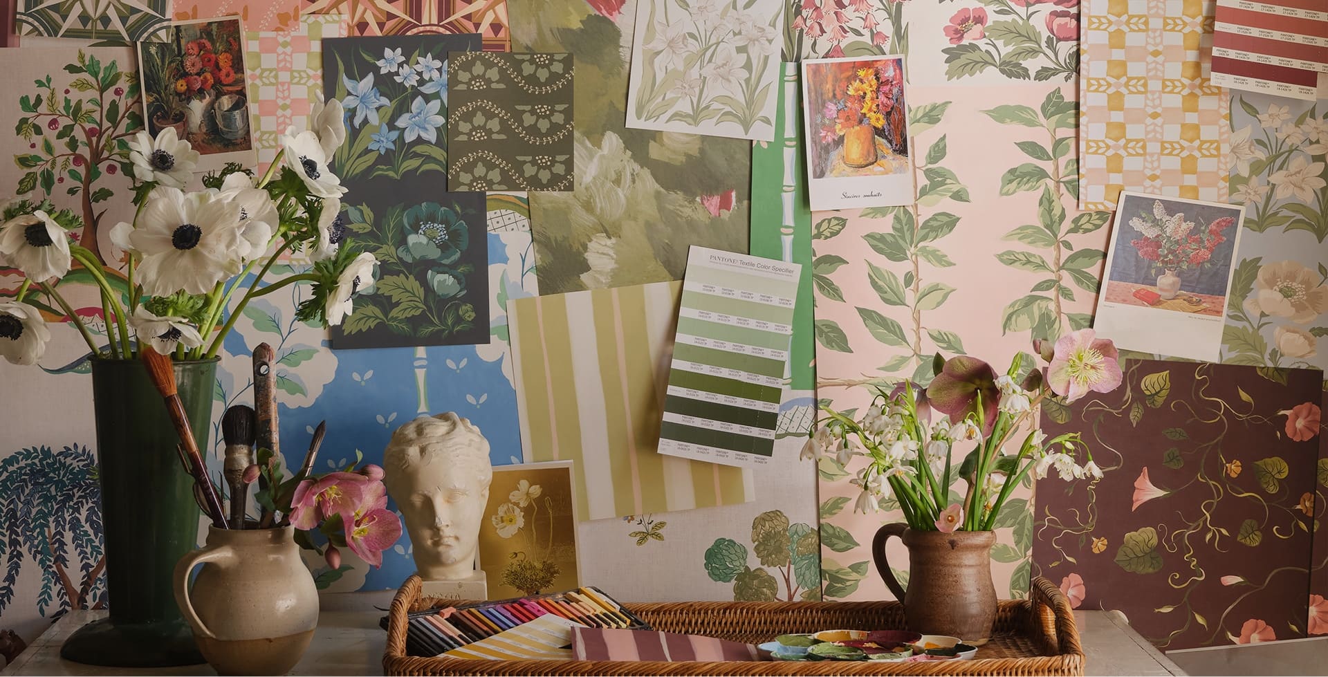 Painter’s Glasshouse is a fresh, light and versatile collection that balances elegant simplicity with understated luxury. Inspired by the atmosphere of an artist’s studio surrounded by nature, the collection brings together painterly landscapes, decorative botanicals and structured patterns designed to layer effortlessly within interiors.