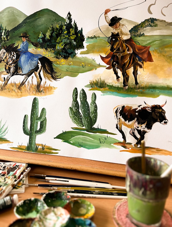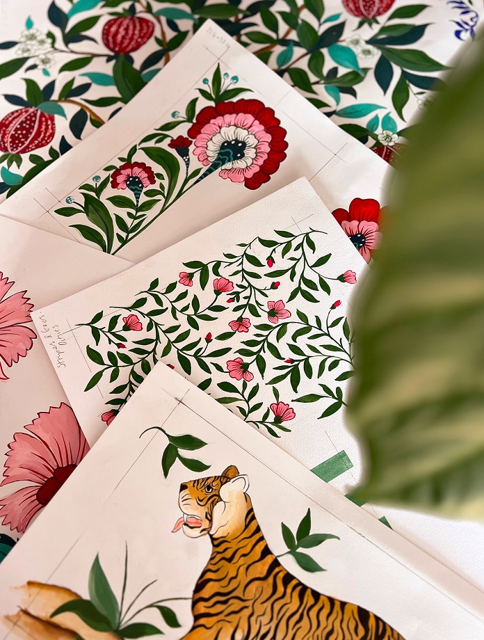 Our Creative Studio is where inspiration meets intention. It is a space alive with paint, paper, sketches, test prints and colour experiments, where tradition and technology coexist and where every collection begins its journey.