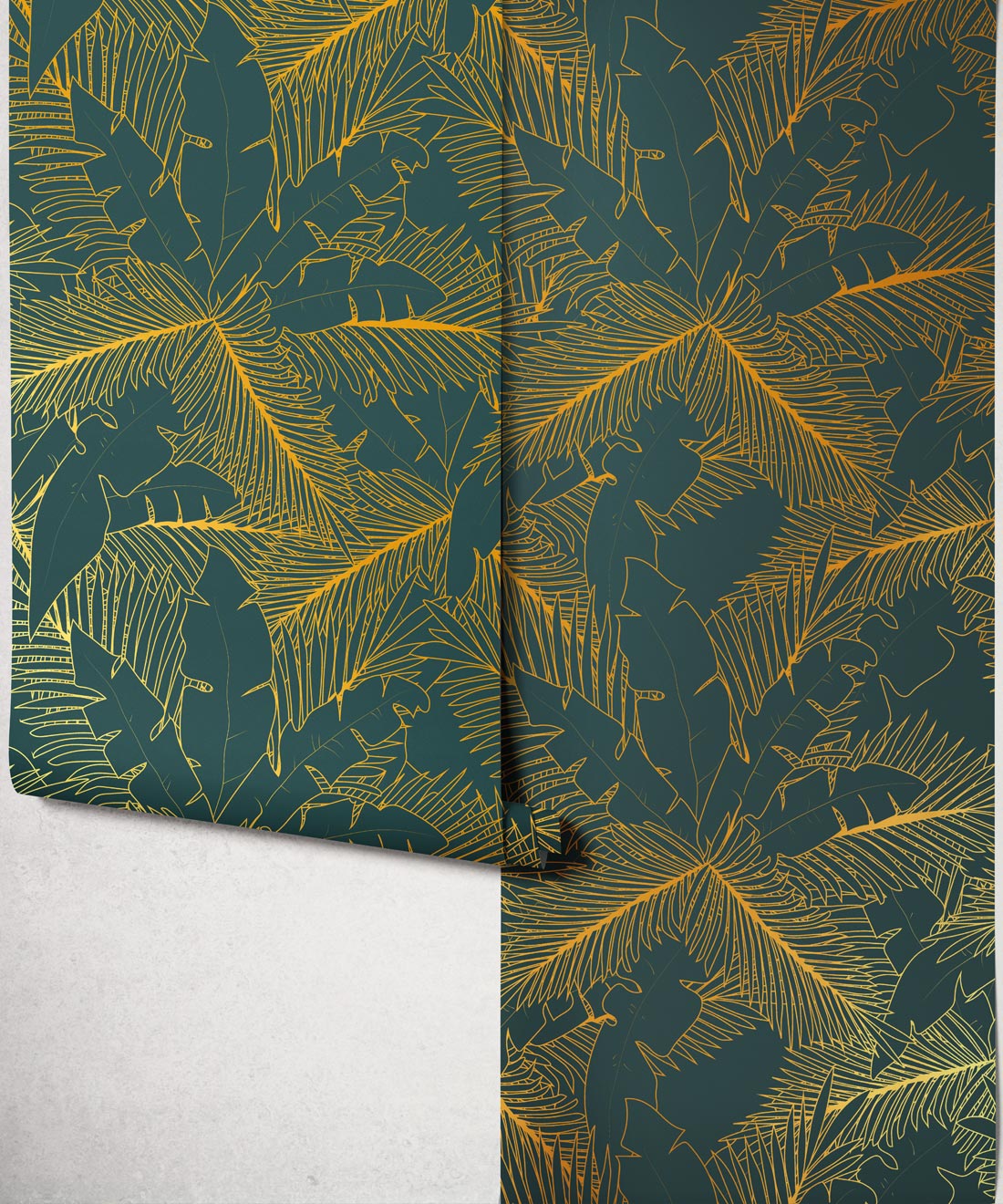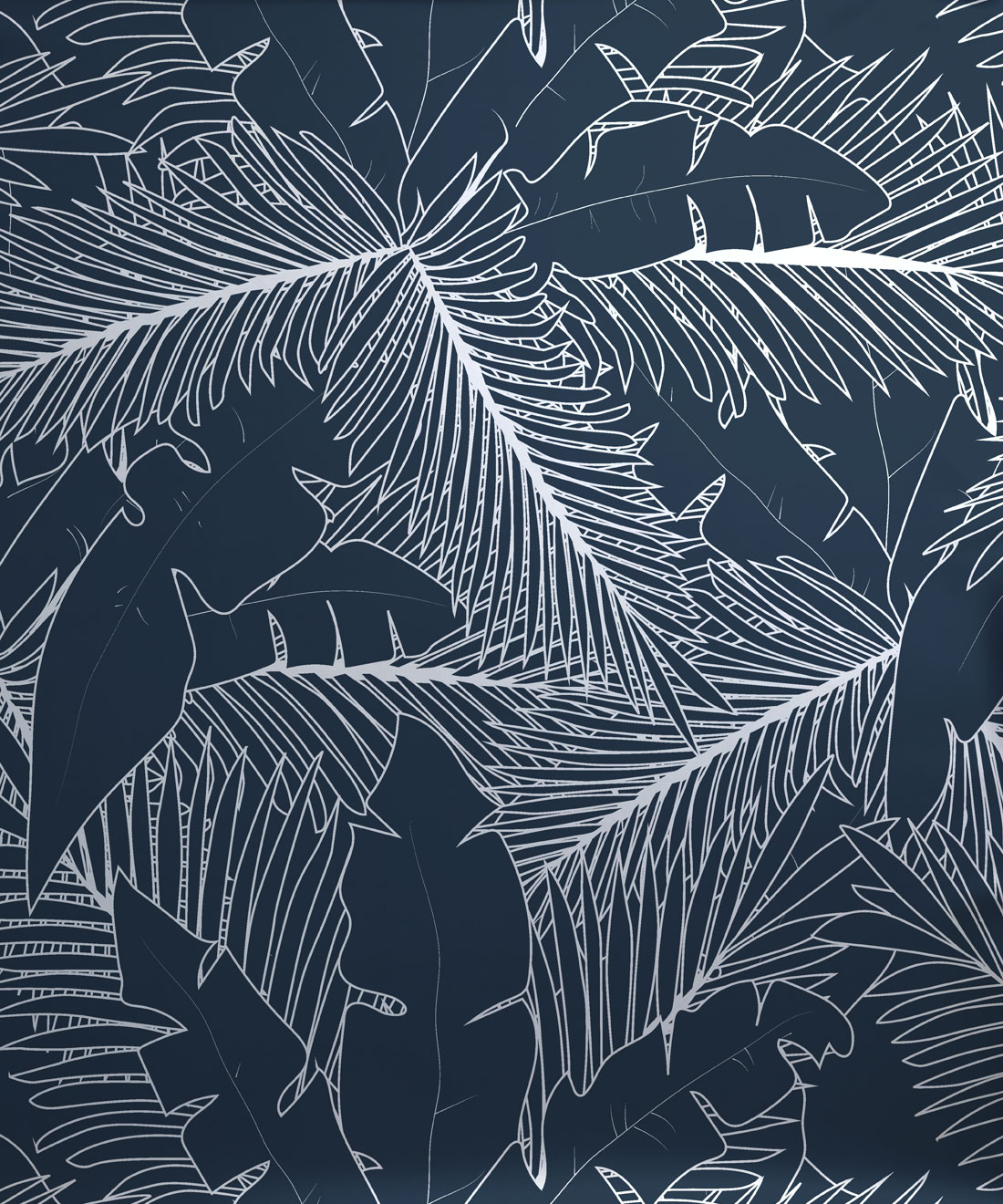 A signature design in Maeve Oliver’s Deco Collection, Art Deco Palm Metallic Wallpaper features overlapping palm leaves rendered in a bold, monochromatic style. Spread across two full-sized rolls, the layered leaves add depth without overwhelming the space. Finished with gold or silver metallic accents, the design brings glamour and connection to nature with refined restraint.