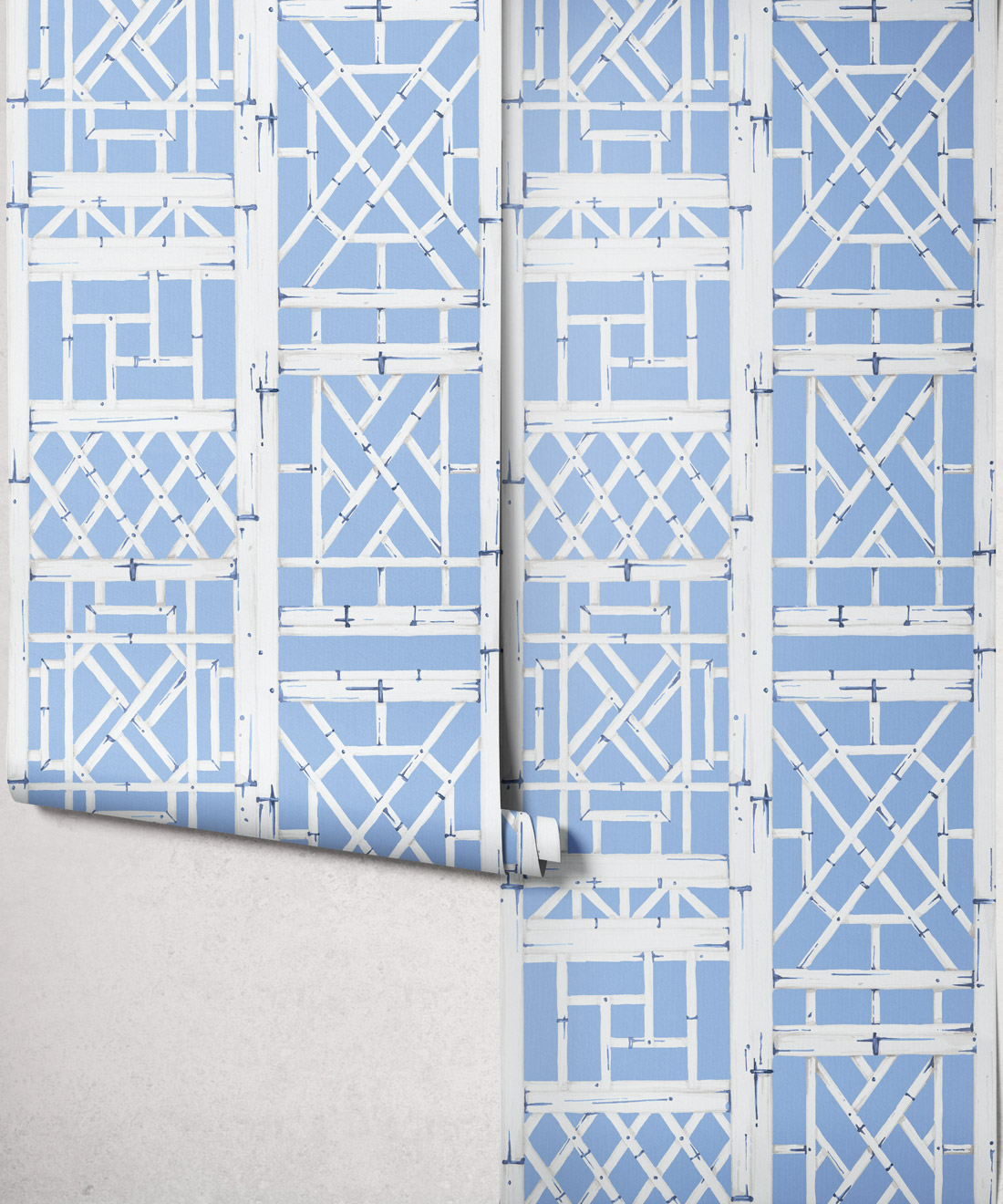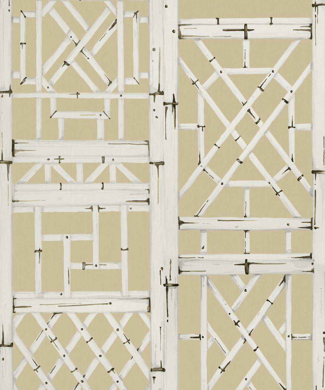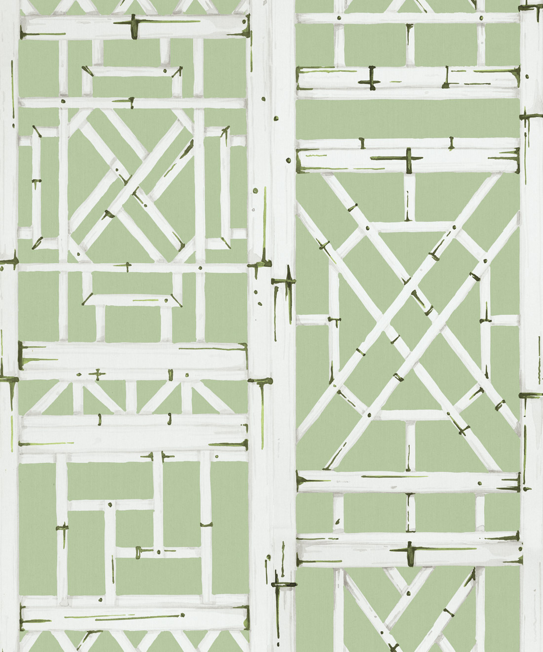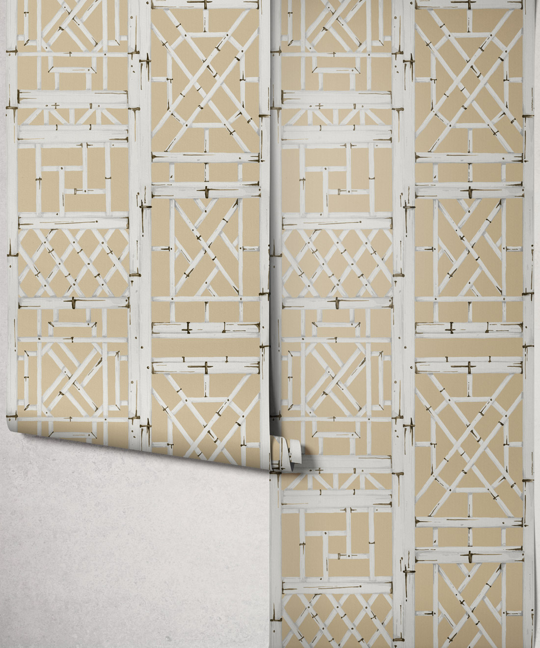 Briland is a large-scale bamboo trellis that channels old West Palm Beach glamour. The hand-painted design evokes both elegance and polished refinement. It adds luminous texture and a touch of American classicism and is ideal for dining rooms, entryways or sunrooms that invite a sense of joyful sophistication.