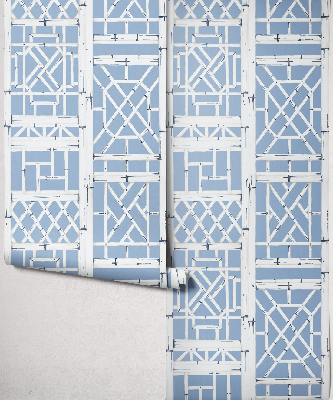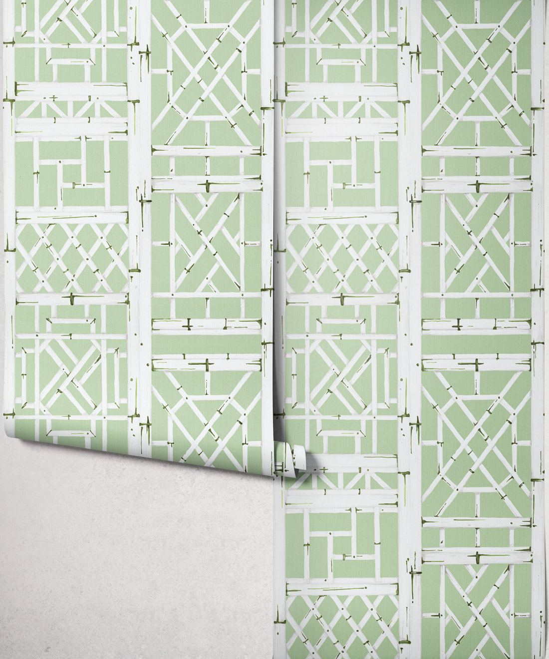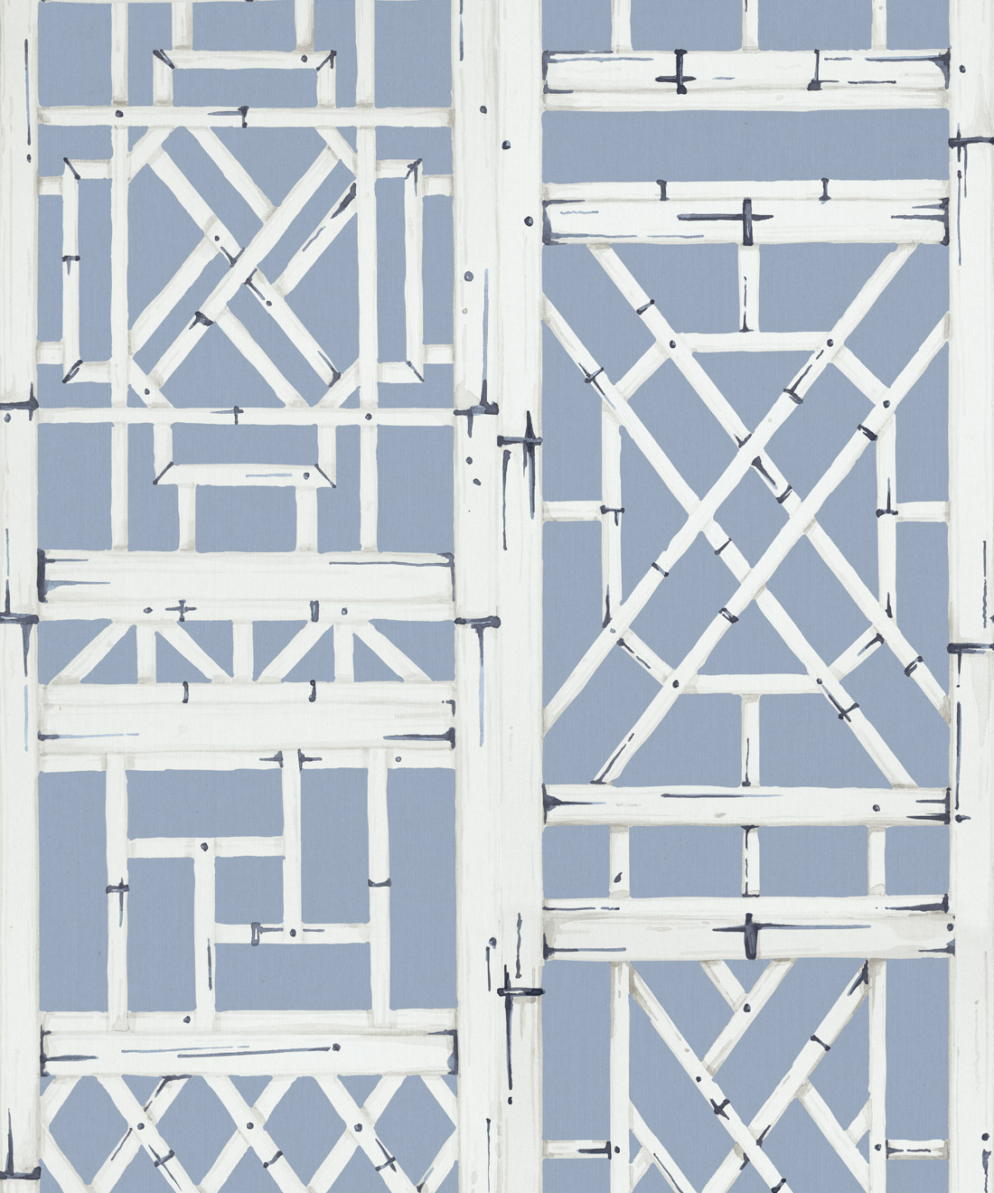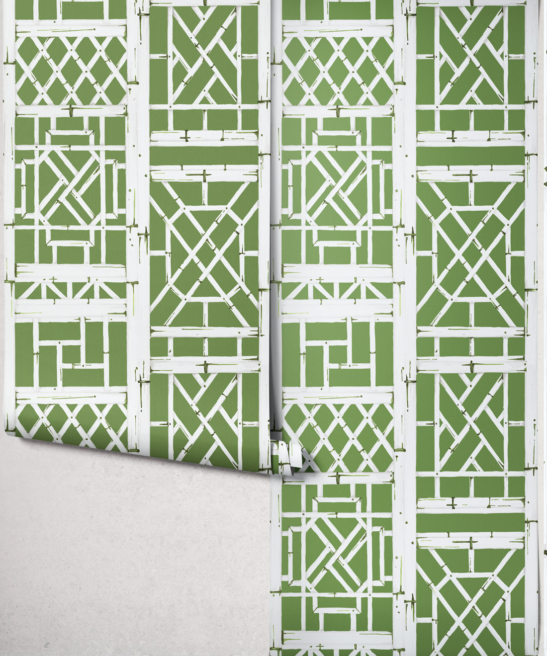 Briland is a large-scale bamboo trellis that channels old West Palm Beach glamour. The hand-painted design evokes both elegance and polished refinement. It adds luminous texture and a touch of American classicism and is ideal for dining rooms, entryways or sunrooms that invite a sense of joyful sophistication.
