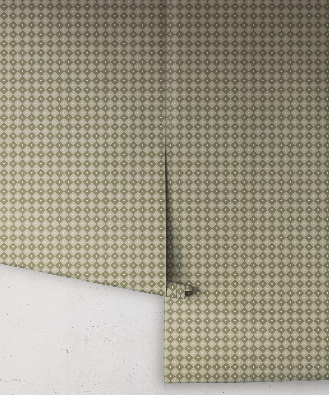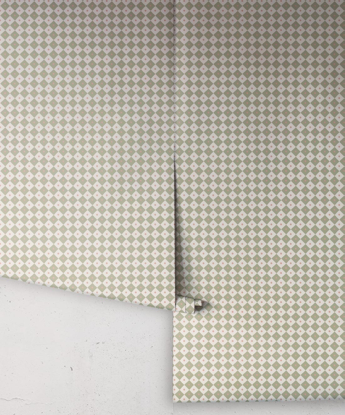 Checkerboard reinterprets a timeless motif with a playful scale and softened palette. Its diamond grid is punctuated by subtle detail, balancing order with charm.