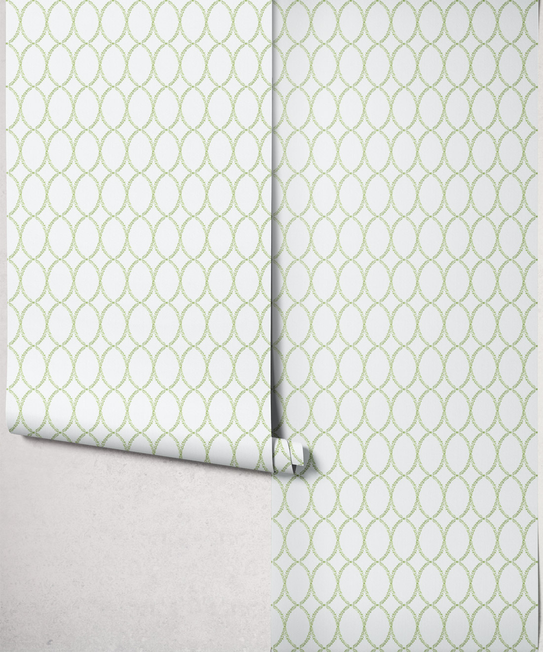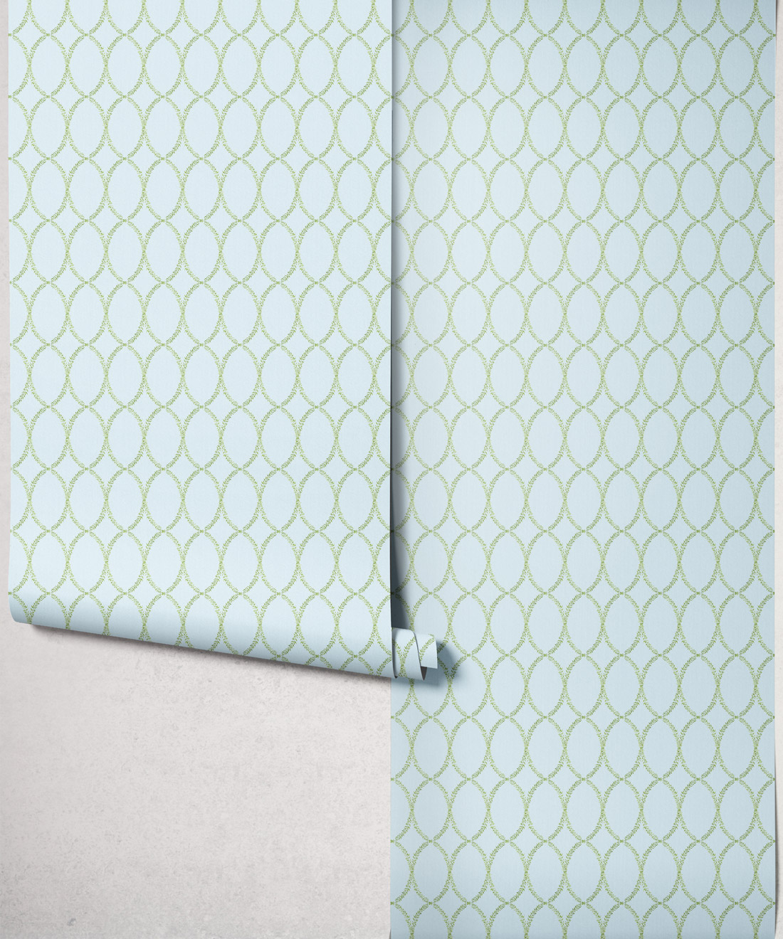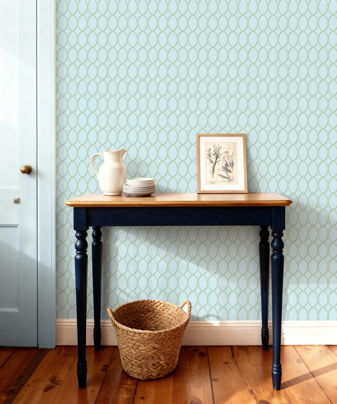 Chloe’s delicate oval vine motif is drawn from Georgian plasterwork. The hand-painted design offers softness and polish in equal measure. With its classic geometry and refined simplicity, Chloe works beautifully in bedrooms, dining areas or kitchens where quiet elegance is key.