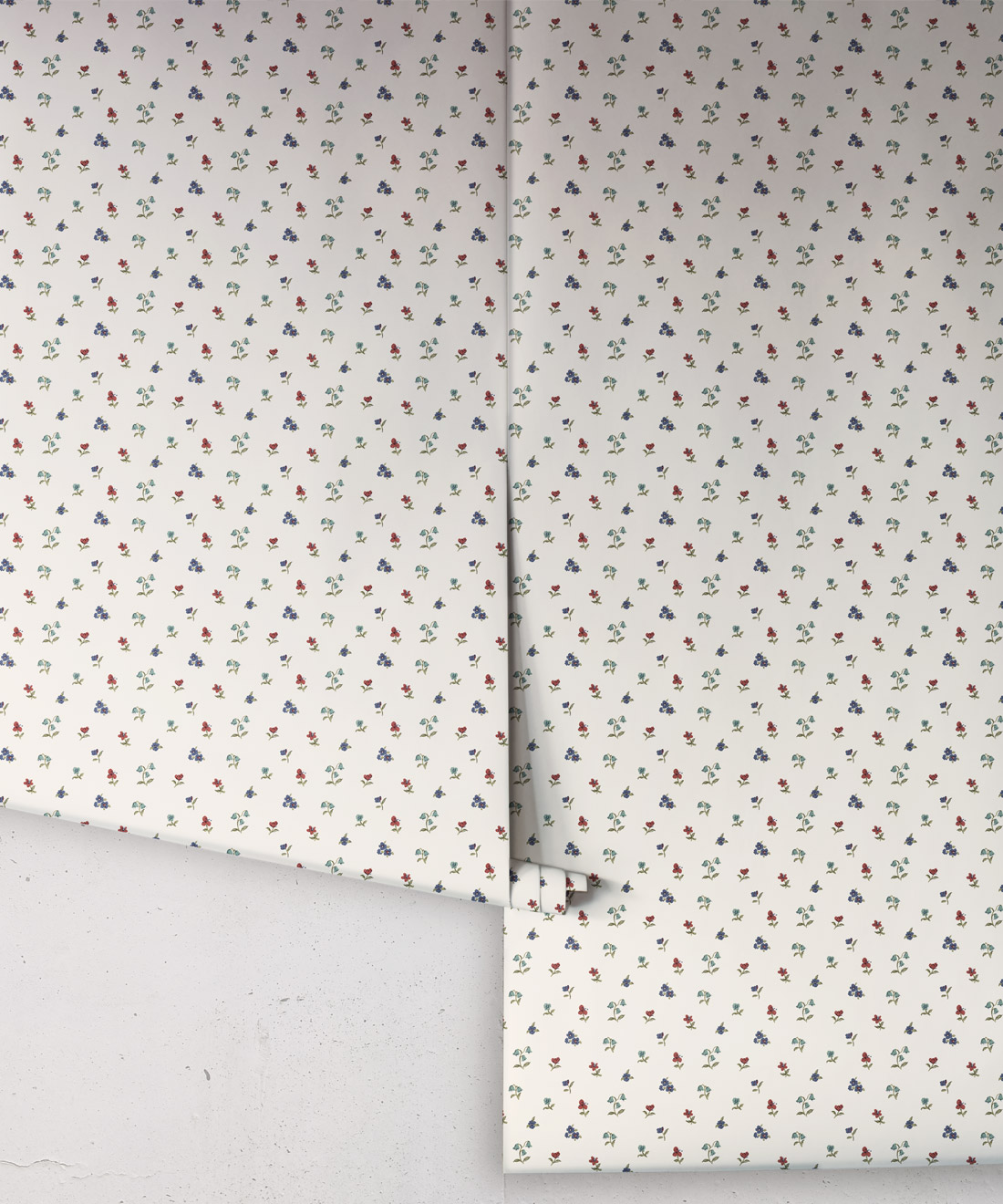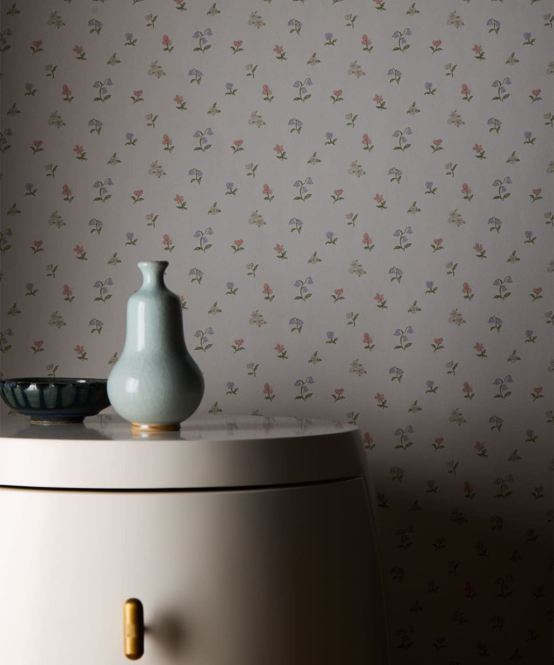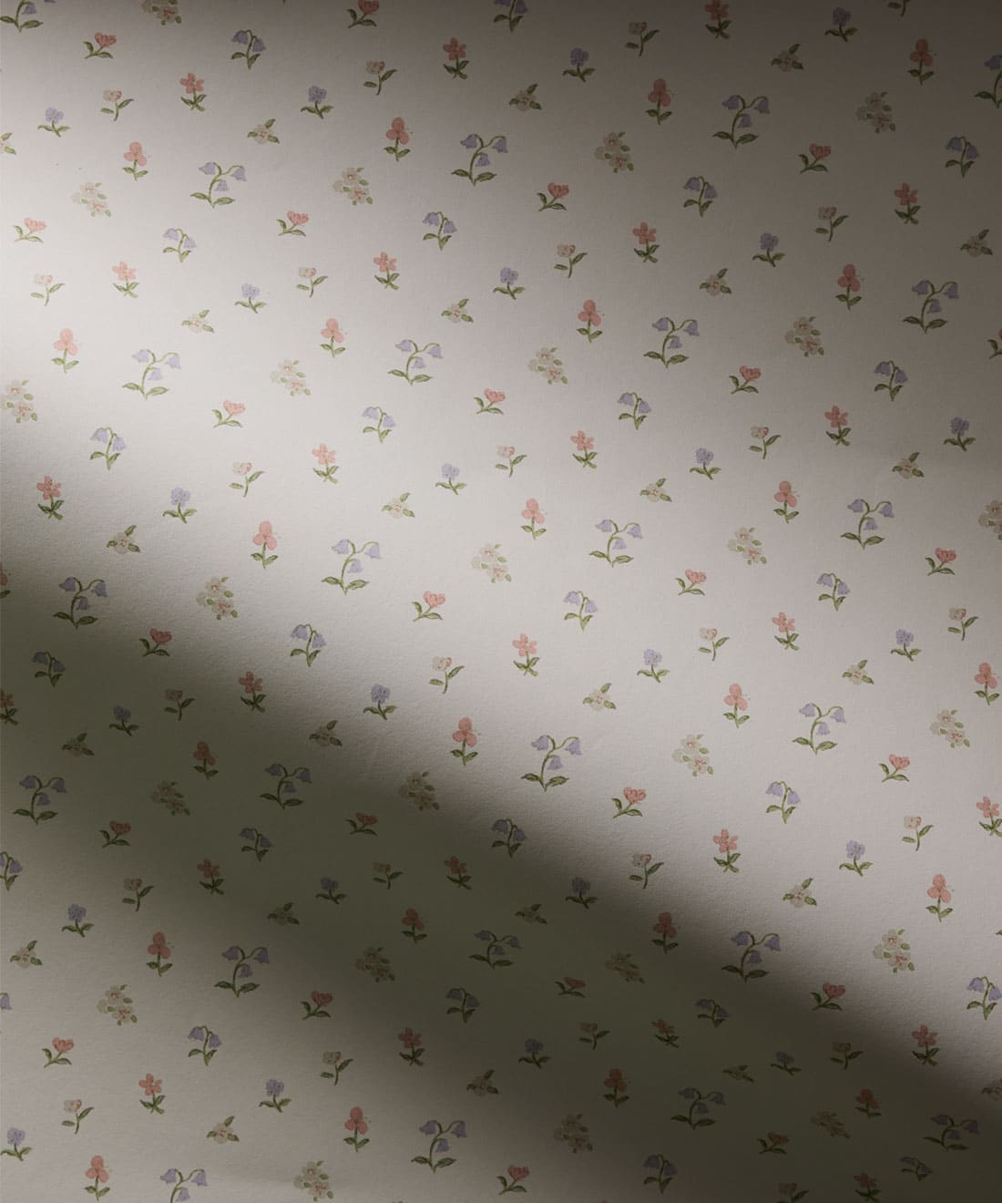 Clara Wallpaper features delicate, hand-drawn florals that balance a soft vintage aesthetic with a fun, cottage-core spirit. Its versatile scale makes it ideal for cosy, characterful spaces.
