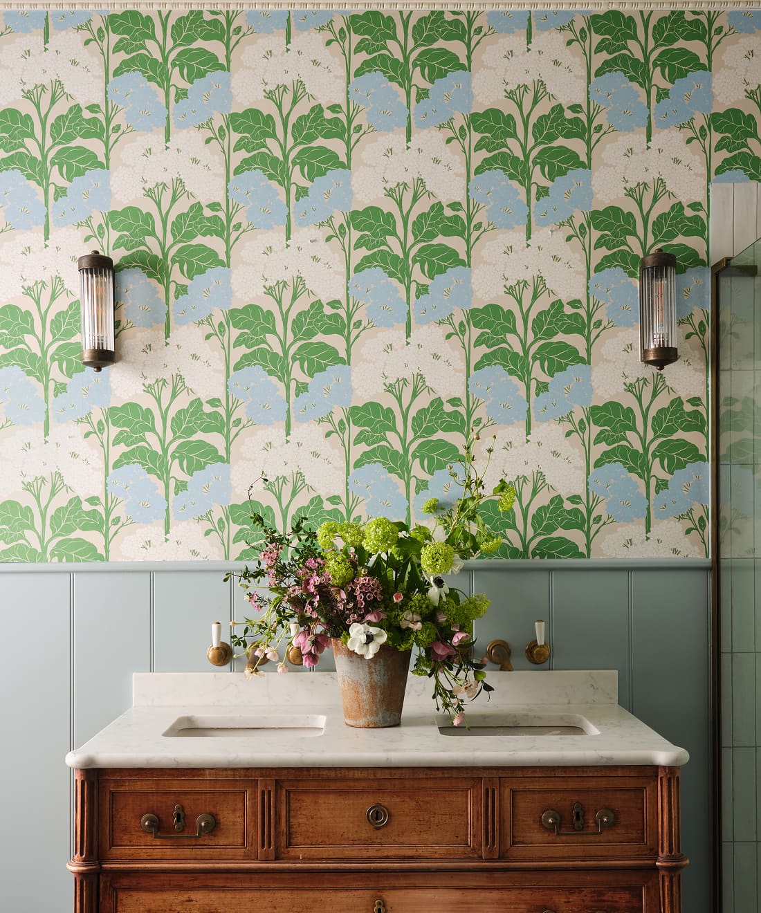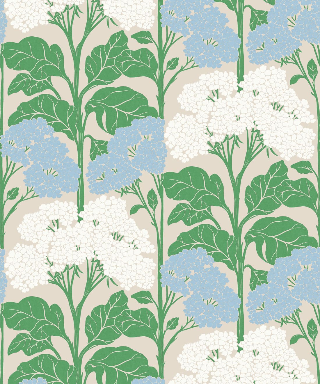 Cow Parsley is a larger scale floral wallpaper that celebrates the wildflowers found along country lanes and hedgerows. Tall stems rise through the pattern as delicate blooms and foliage spread across the design.