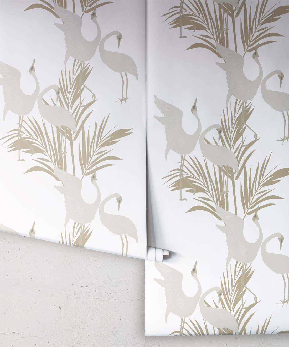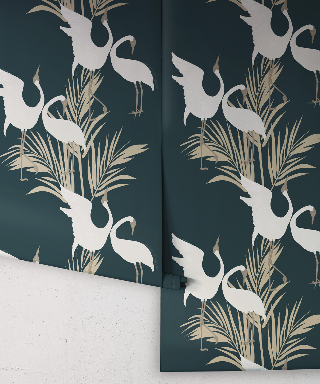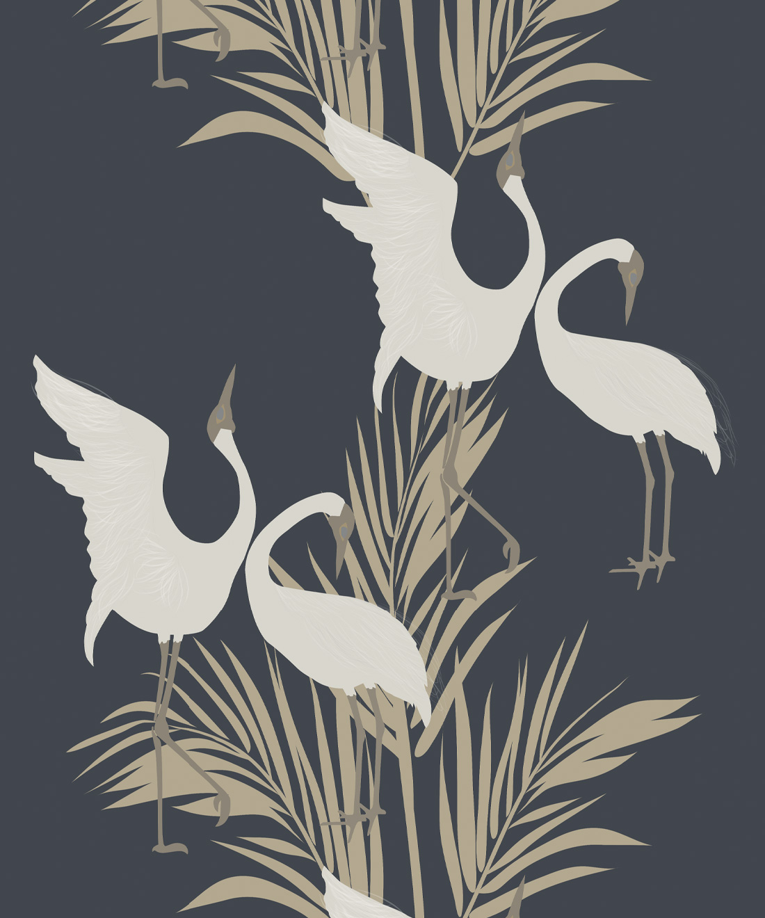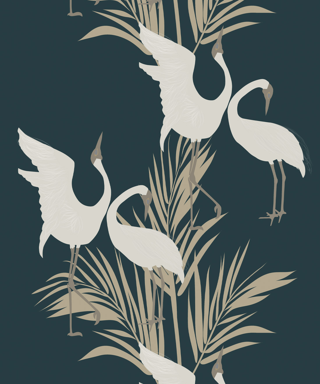 Sometimes referred to as the ‘Australian Crane,’ Brolgas are a tall, slender bird native to the wetlands of tropical and south-eastern Australia. The Dancing Brolgas Wallpaper from Maeve Oliver is directly inspired by the iconic courting dance that the birds are known for, recreated in an Art Deco style to form a part of the Deco Collection. These majestic creatures and delicate palm fronds will make a striking addition to both commercial and residential interiors. Available in Indigo, Forest Green, Powder Blue and Brass, this design can be styled in both moody and light spaces.