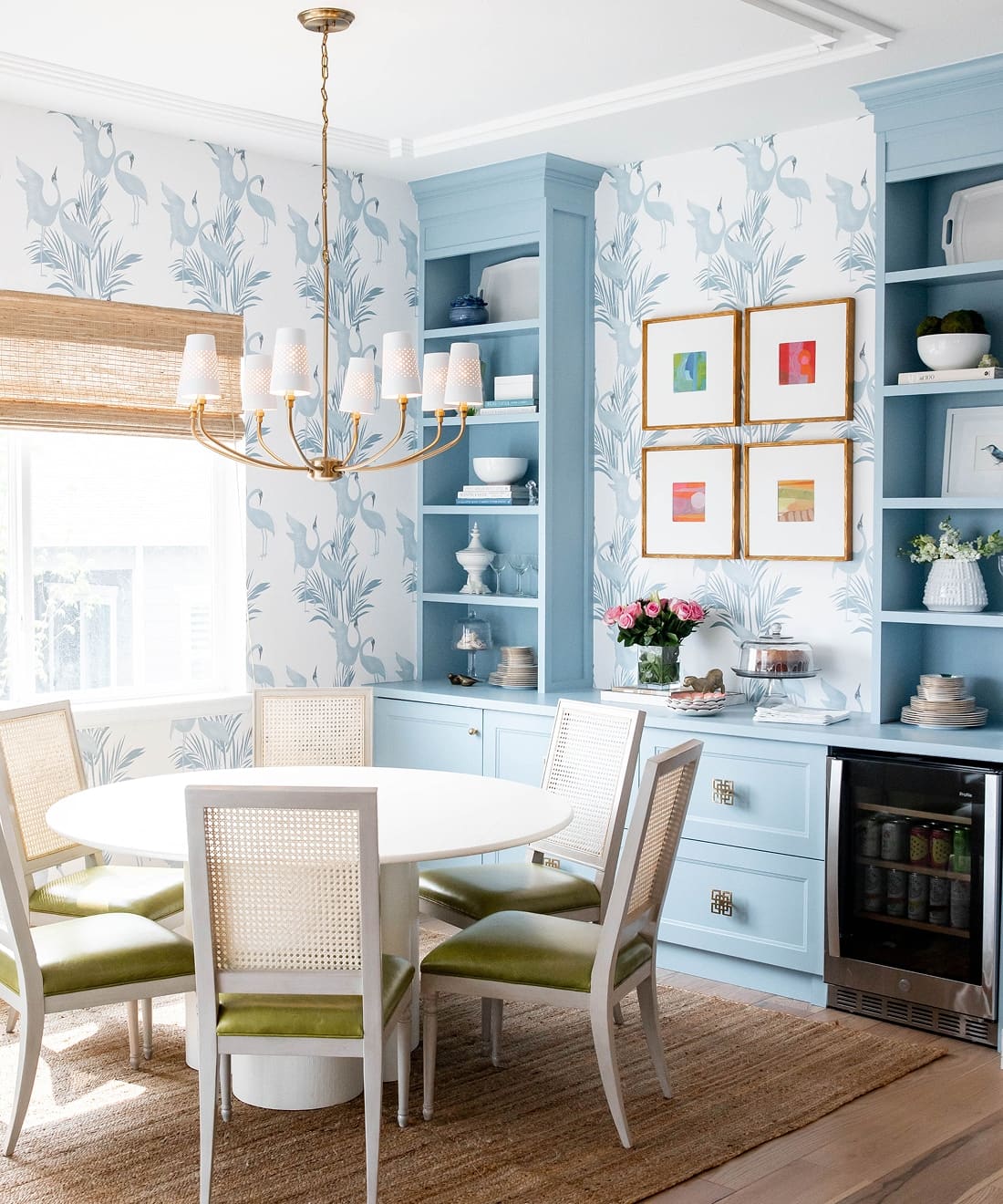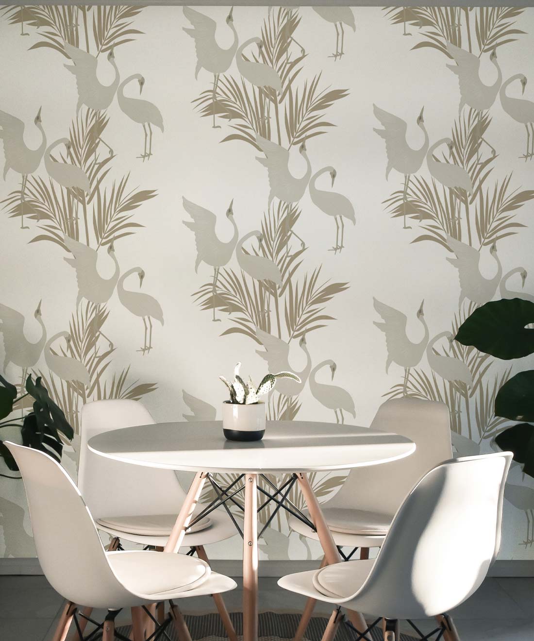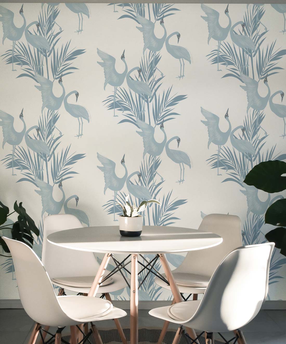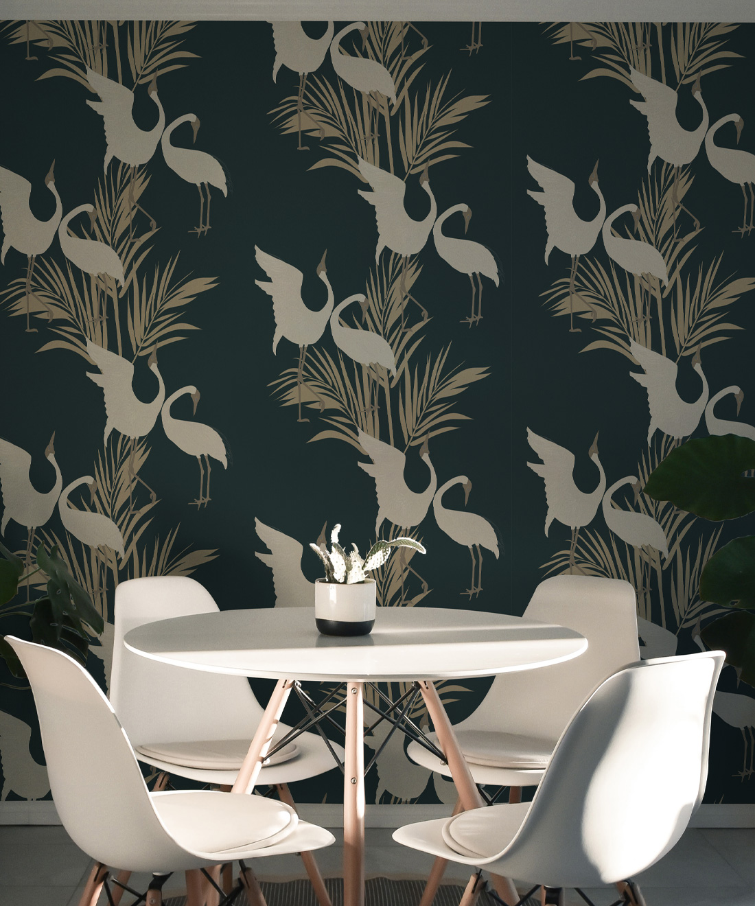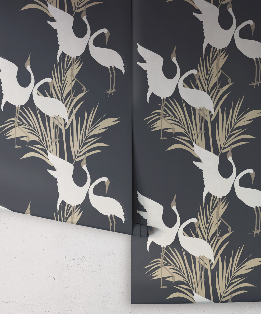 Sometimes referred to as the ‘Australian Crane,’ Brolgas are a tall, slender bird native to the wetlands of tropical and south-eastern Australia. The Dancing Brolgas Wallpaper from Maeve Oliver is directly inspired by the iconic courting dance that the birds are known for, recreated in an Art Deco style to form a part of the Deco Collection. These majestic creatures and delicate palm fronds will make a striking addition to both commercial and residential interiors. Available in Indigo, Forest Green, Powder Blue and Brass, this design can be styled in both moody and light spaces.