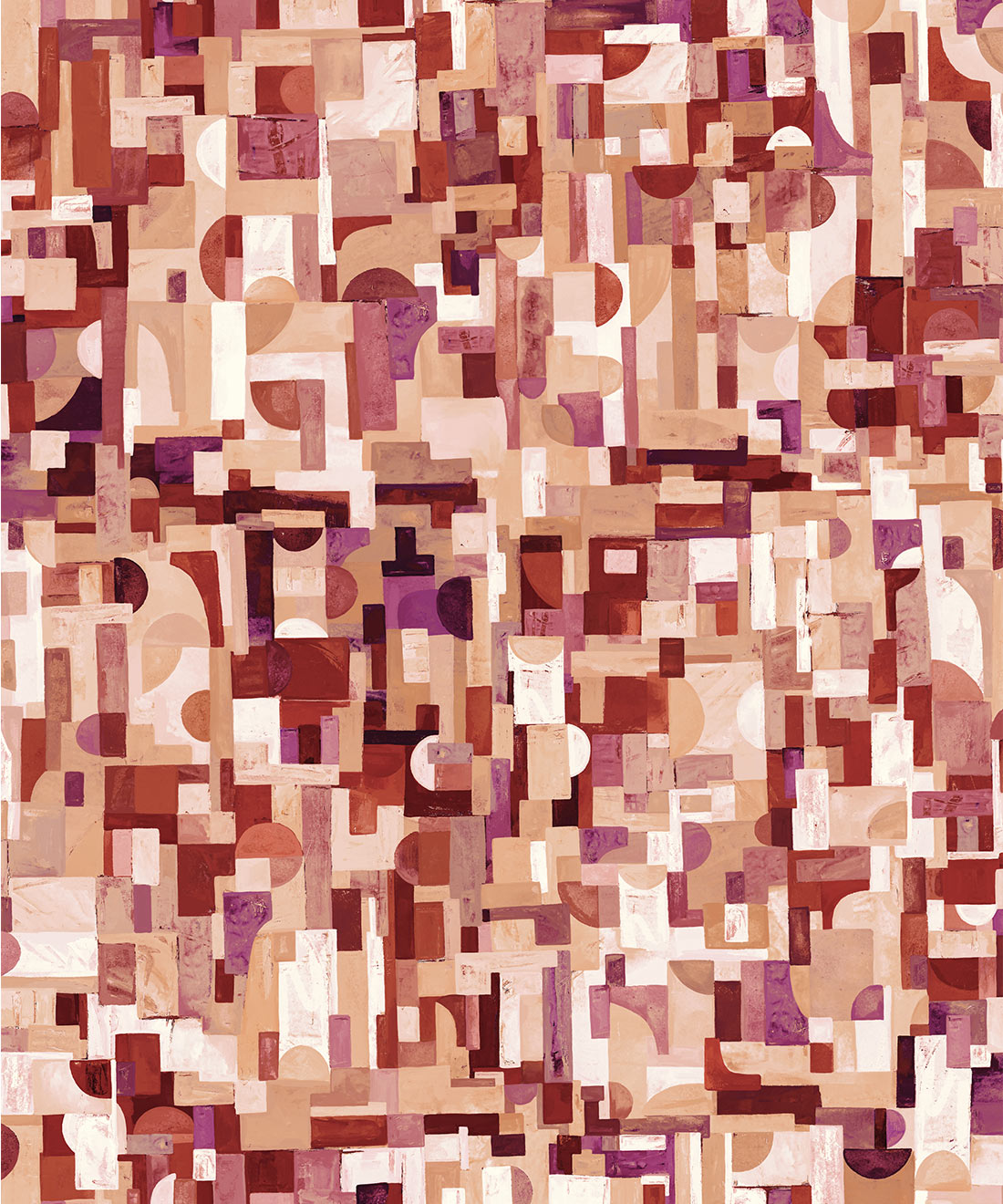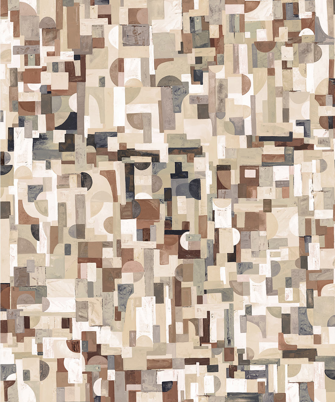 Each colorway is built from tonal variations of a single hue, adding subtle depth and movement that draws the eye across the wall. The composition – part cubist, part digital mosaic – echoes a Picasso-esque sensibility, reimagined for today’s urban interiors.