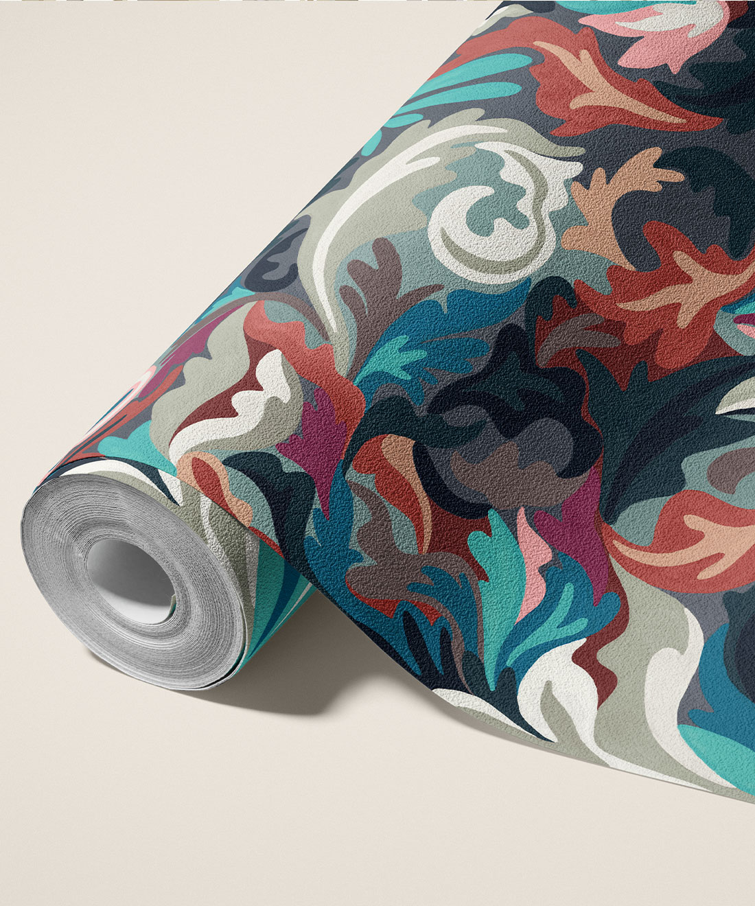 The soft undulations and delicate leaves create a sense of organic harmony, making Filigree a versatile backdrop for hospitality, office, and luxury retail environments. Whether used to add a subtle layer of sophistication or to make a bold, artistic statement, the design evokes a timeless grace that elevates interiors with its effortless charm.