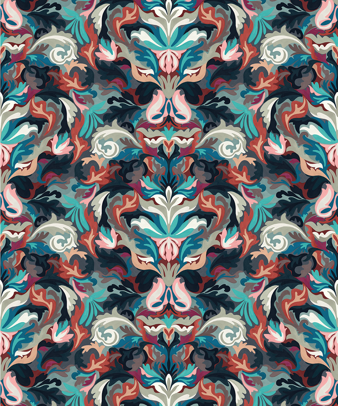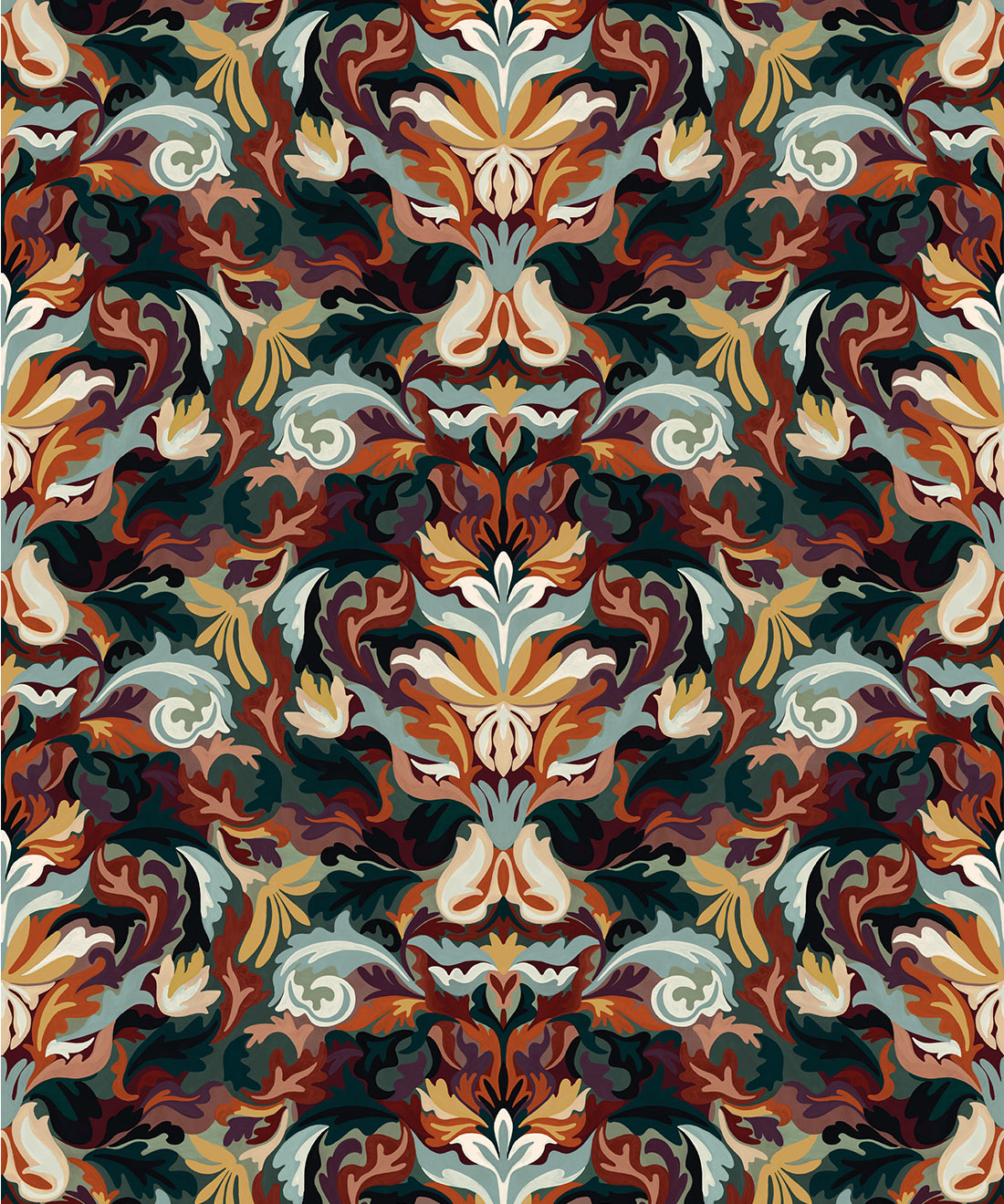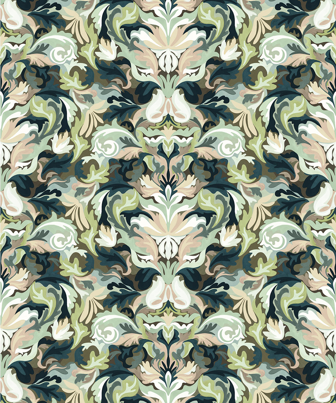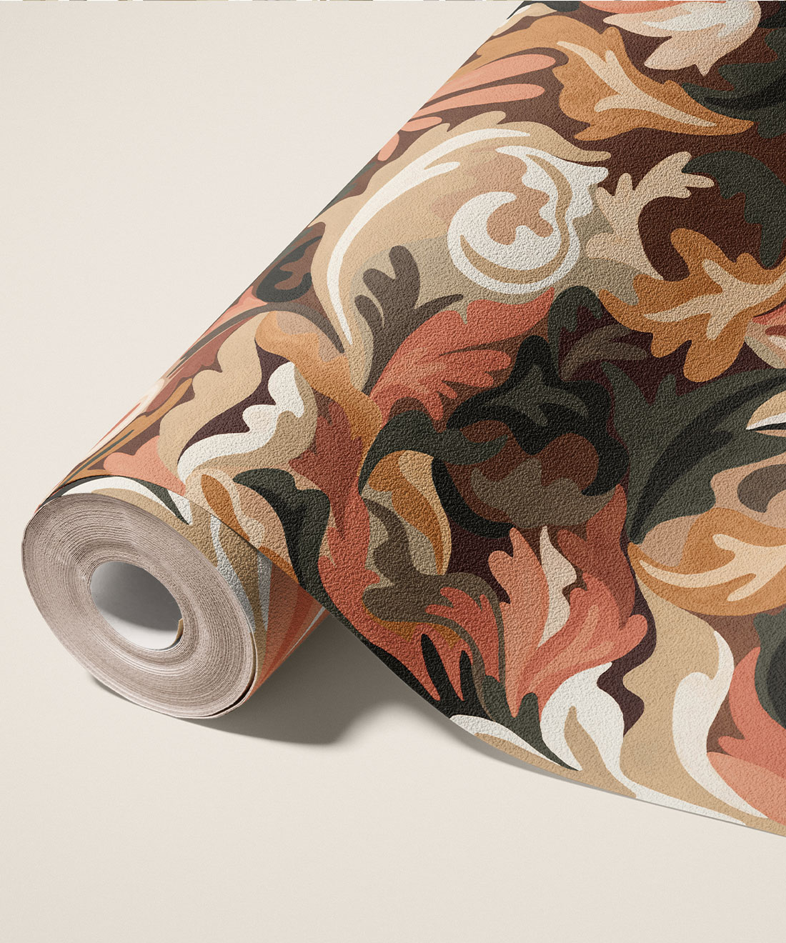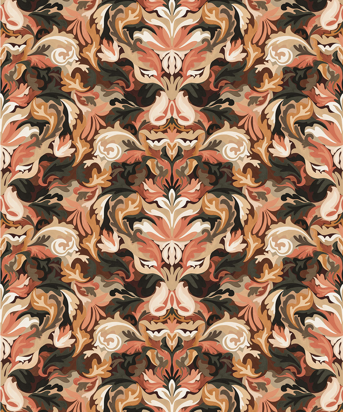 Filigree is a sophisticated celebration of ornamental beauty, weaving together swirling leaf motifs in an elegant, rhythmic pattern. Inspired by the delicate craftsmanship of traditional metalwork and botanical flourishes, this design offers a refined visual texture that brings depth and movement to any commercial space.