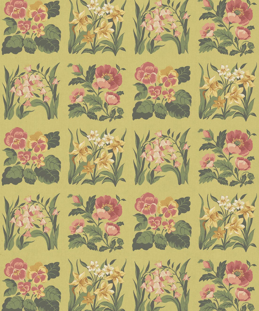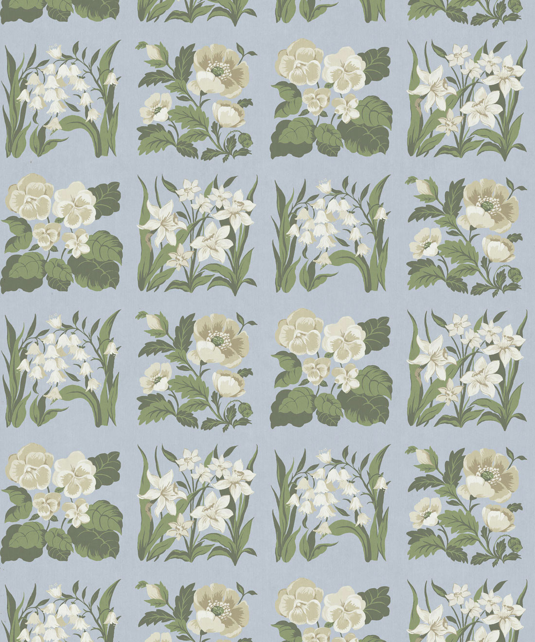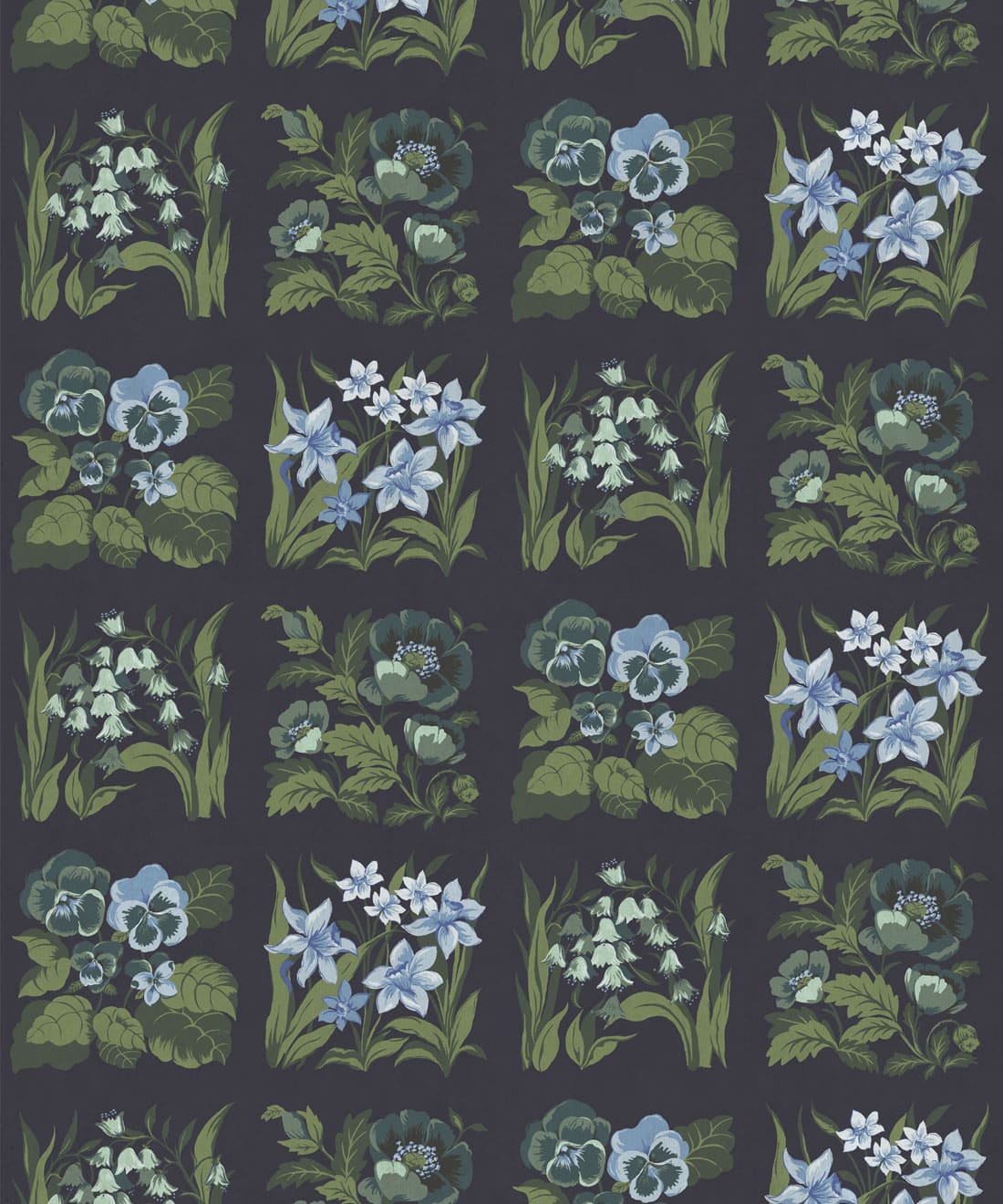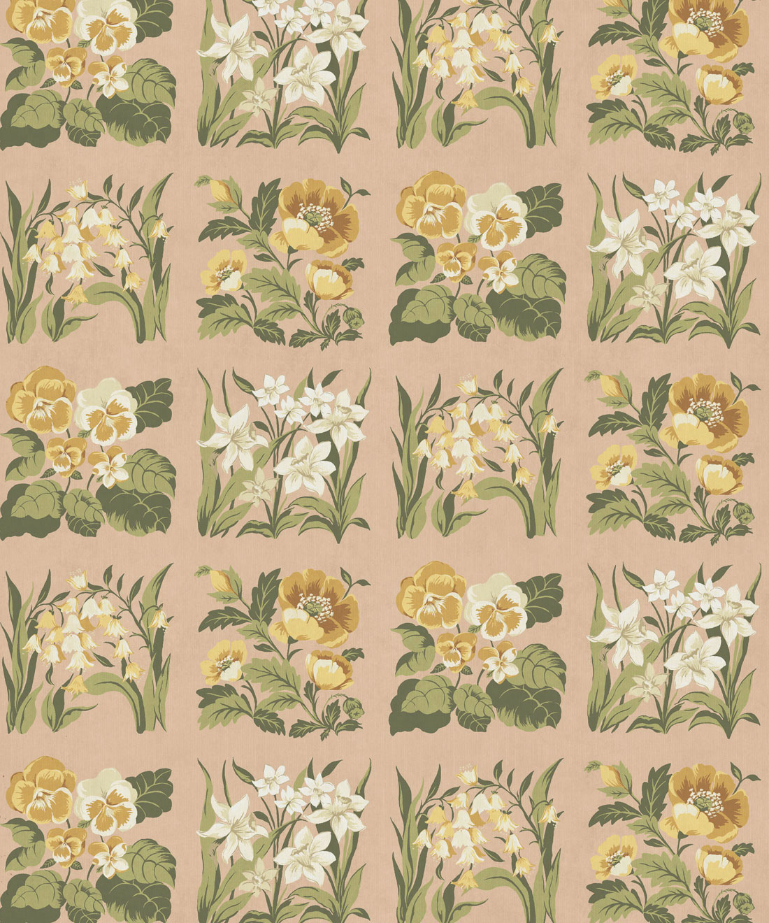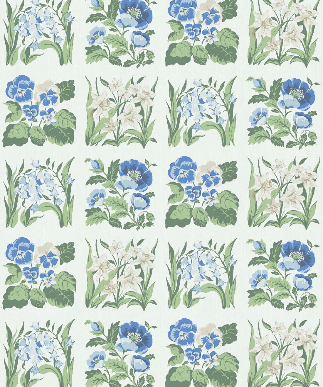 Flower Patch Decorative Textile Wallpaper is a vintage inspired floral wallpaper featuring delicately drawn wildflowers arranged in neat squares like garden tiles. The pattern creates a subtle checked layout across the wall, bringing botanical charm and gentle structure to the design.