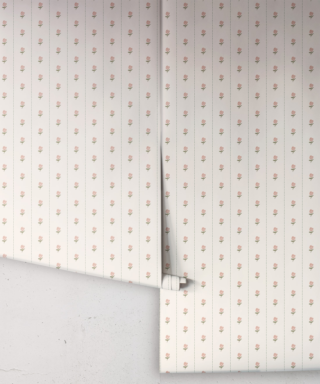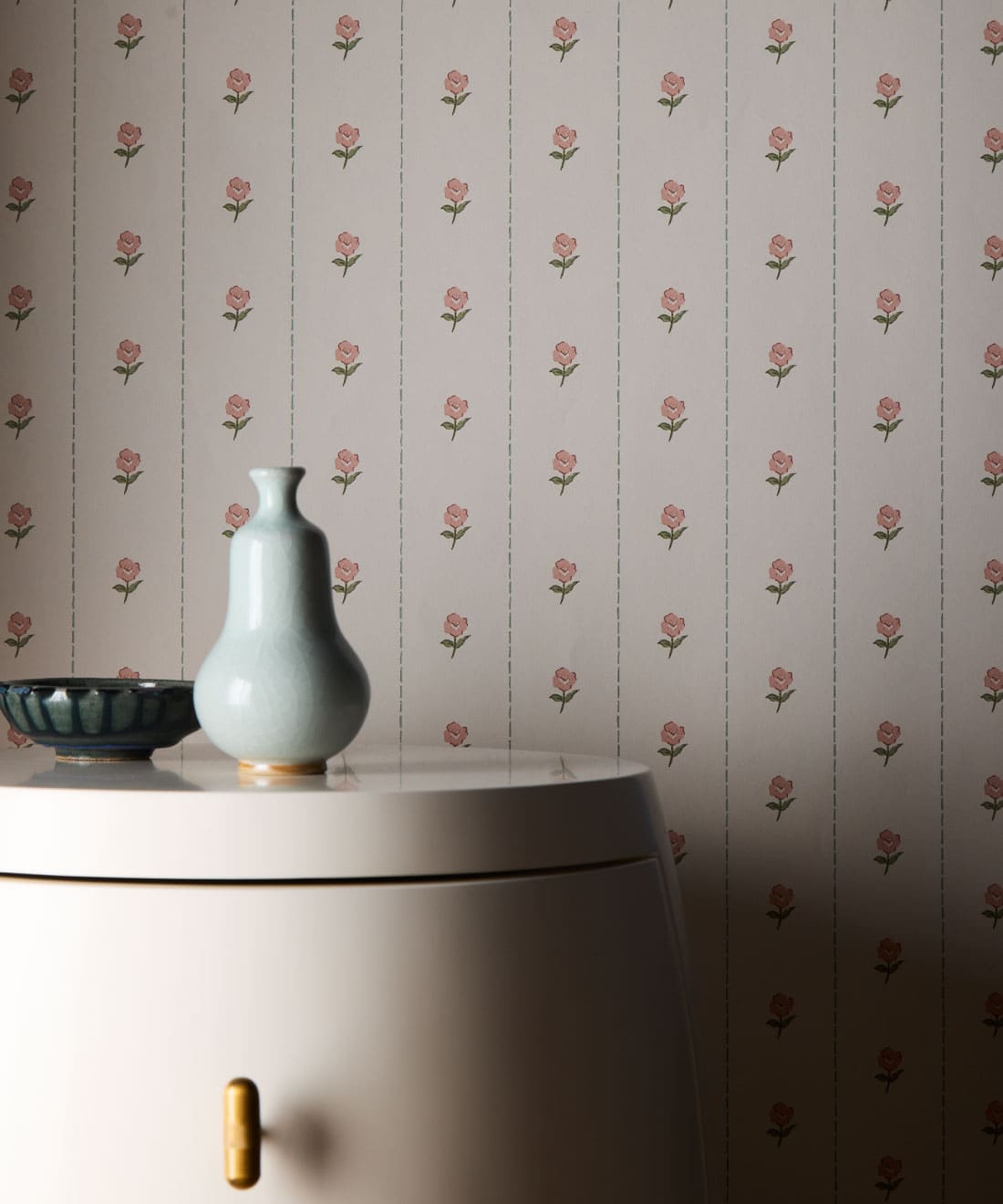 Jane Wallpaper brings a timeless floral repeat in a hand-drawn style that feels both vintage and fun. Its petite scale makes it versatile for feature walls or covering entire rooms.