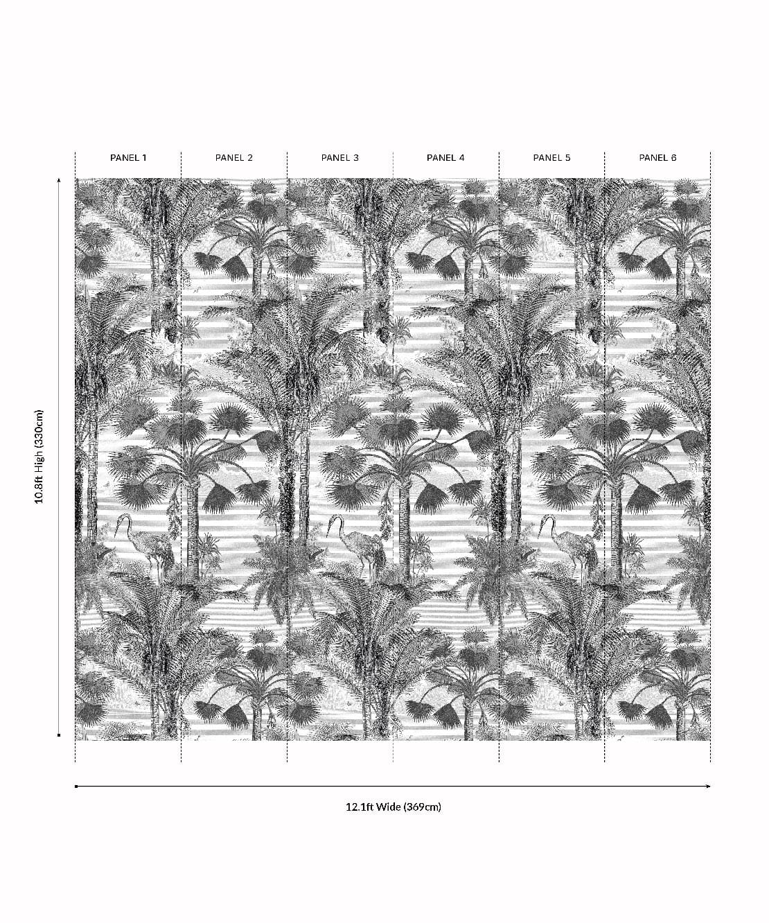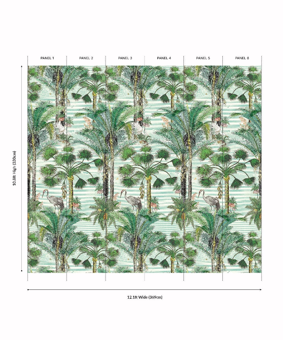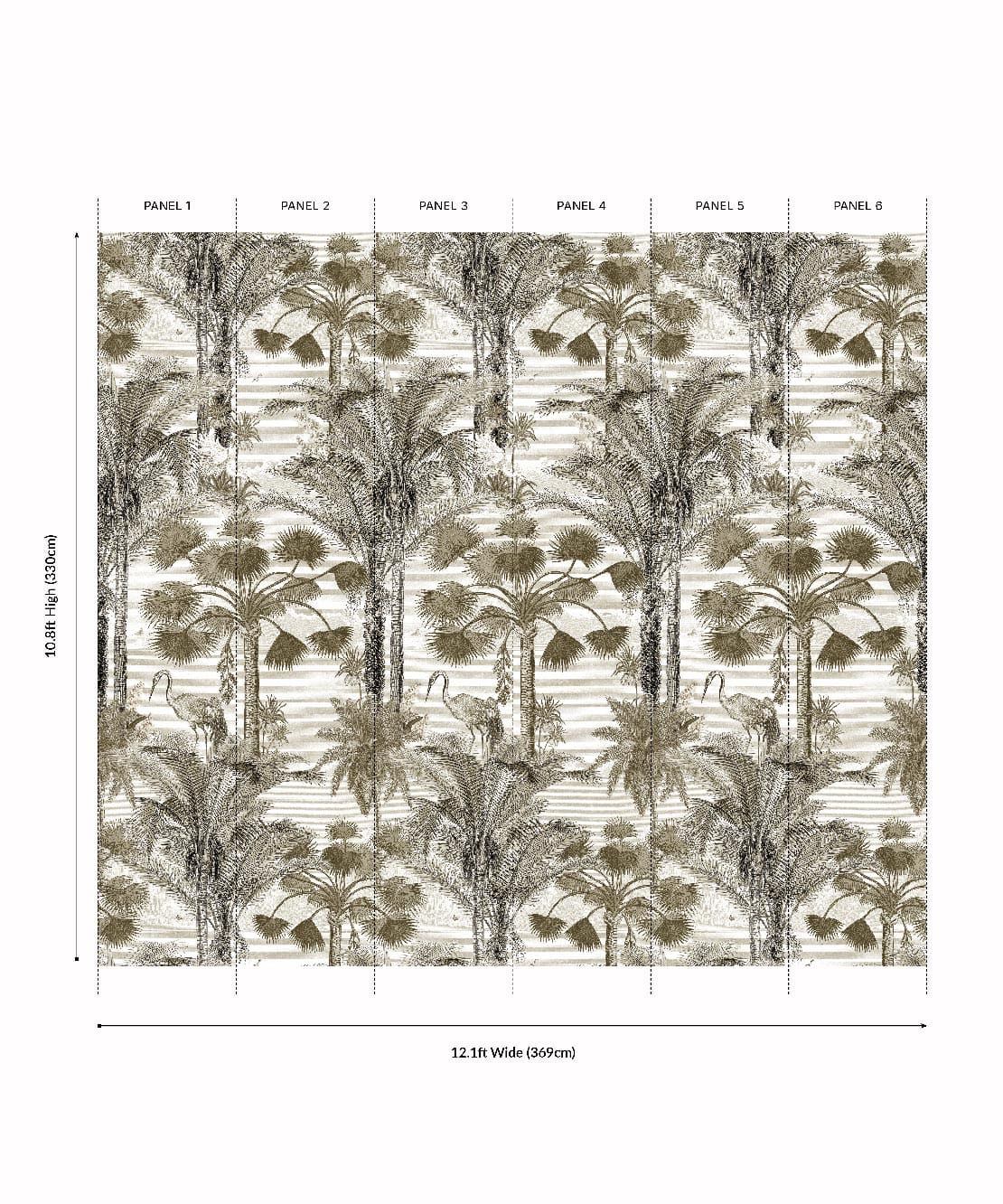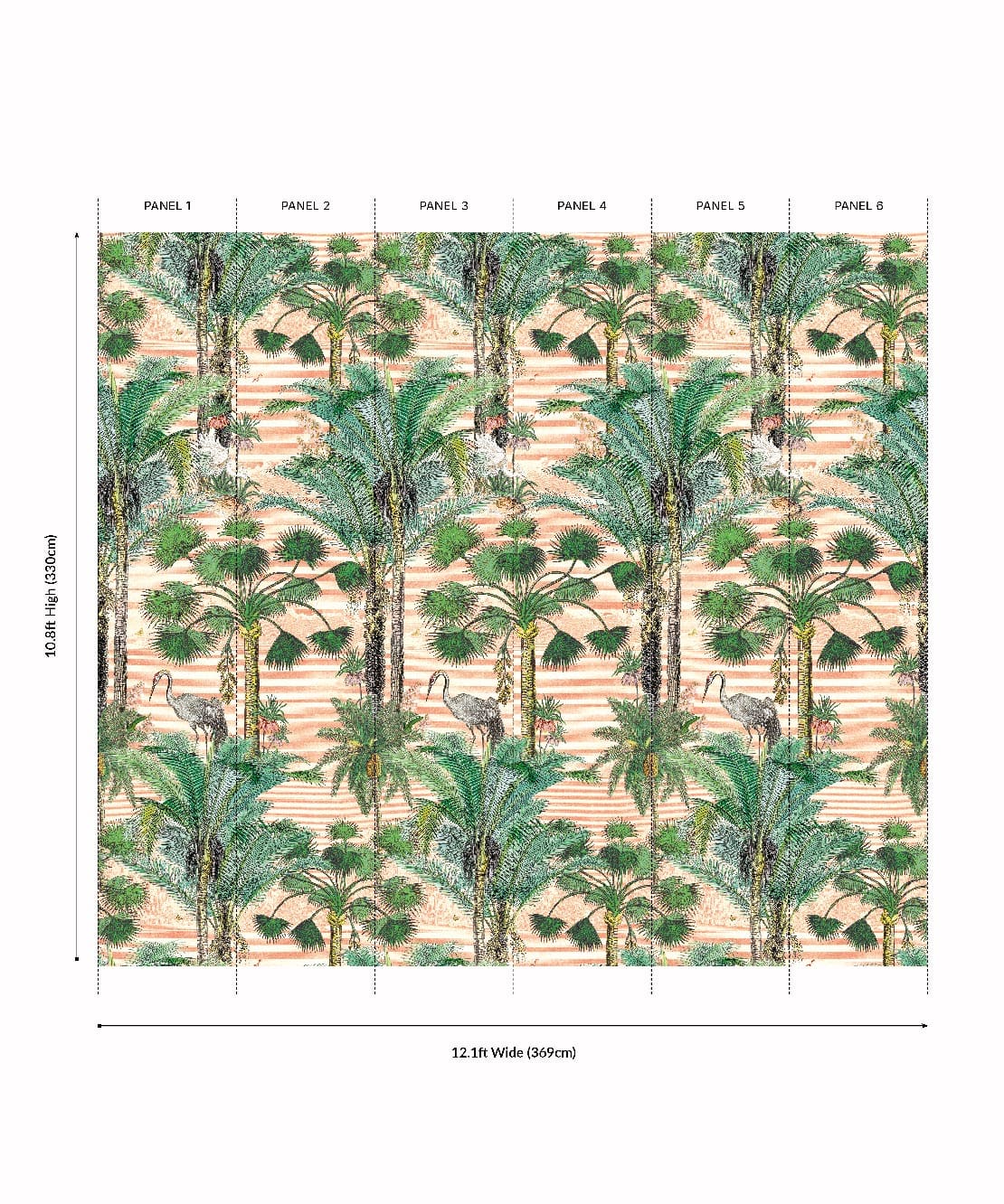 Kerala Palms really showcases the palm trees in the Indian Subcontinent mural. Who doesn’t love a palm!? It also consists of birds and beautiful orchids cascading from the trees. This wallpaper is both tropical and timeless.