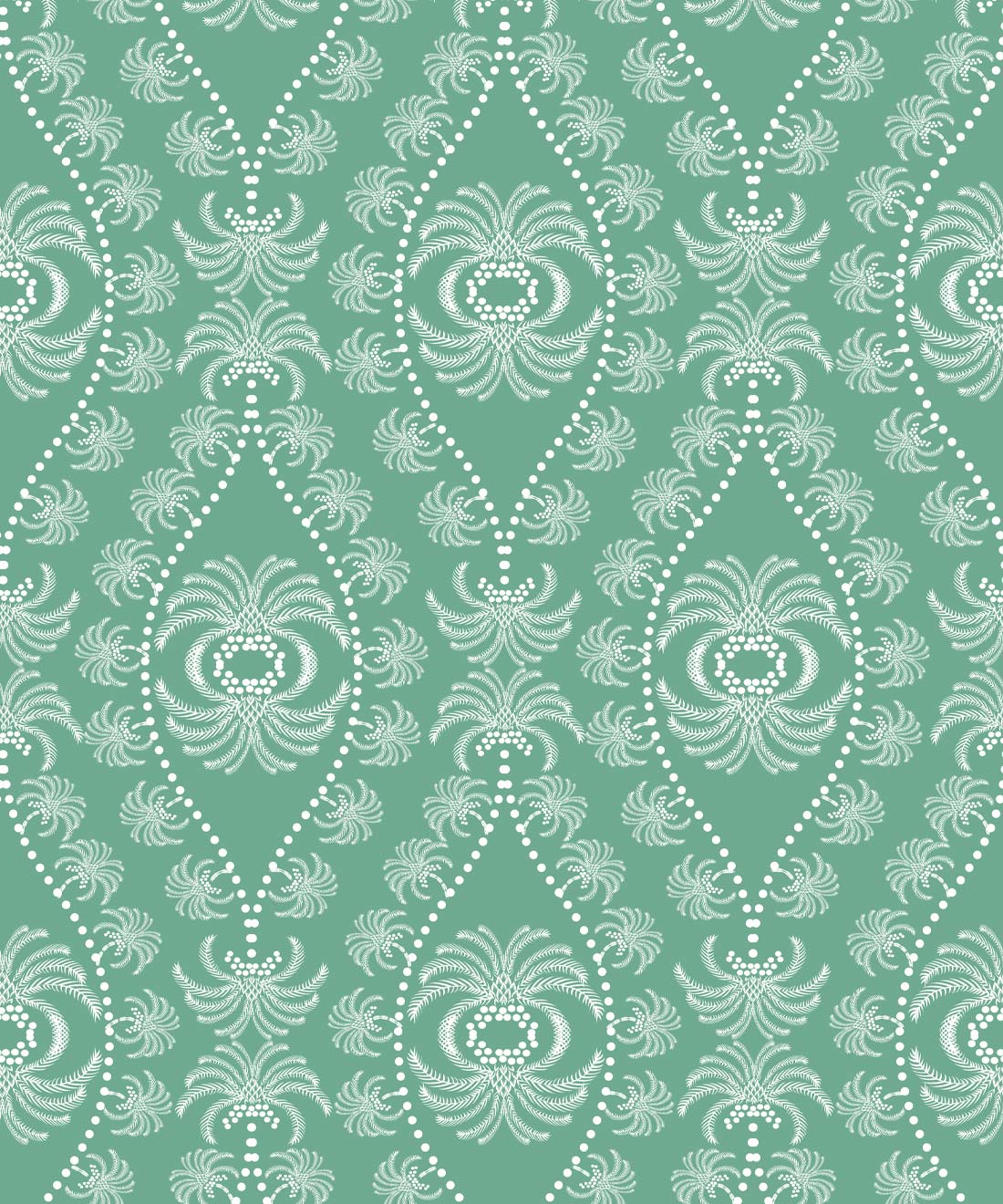 The elegant Palm design from Maeve Oliver forms a part of their Jewel collection, and features a large-scale repeat of palm leaves and gables, available in two soothing colours. The perfect symmetry and detailed flora combine to create the illusion of waves that will add gentle rhythm and a touch of sophistication to any space.