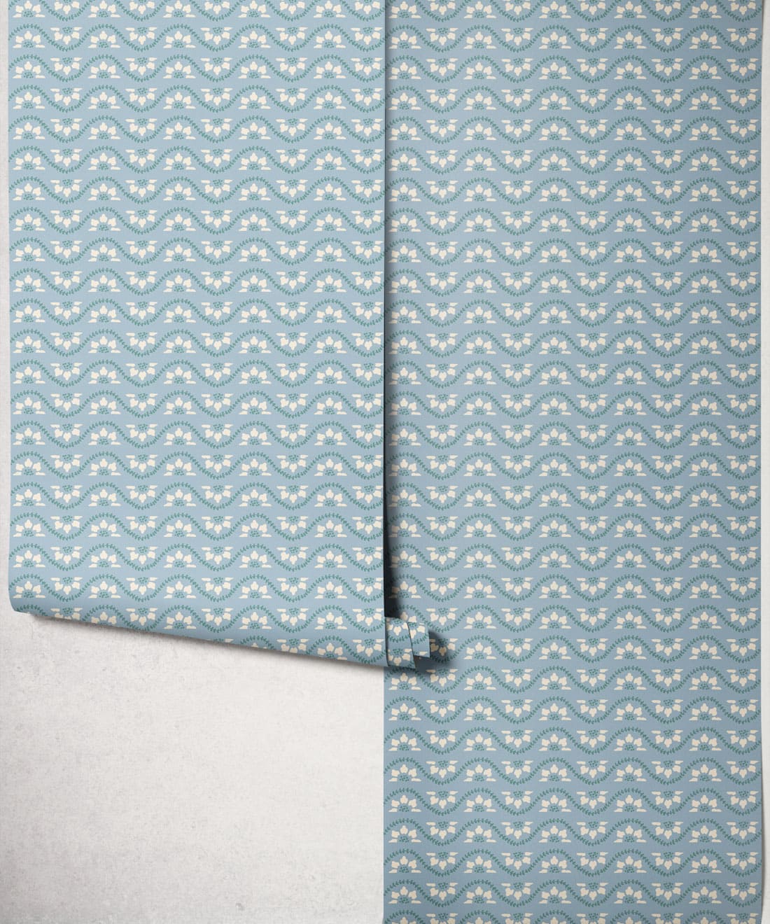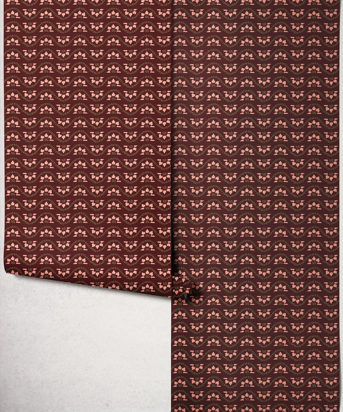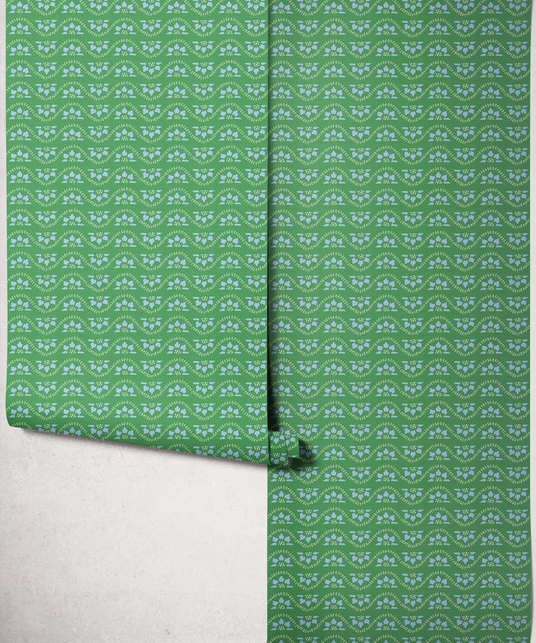 Its smaller scale allows the wallpaper to layer easily within interiors, adding decorative movement while complementing the collection’s larger botanicals.