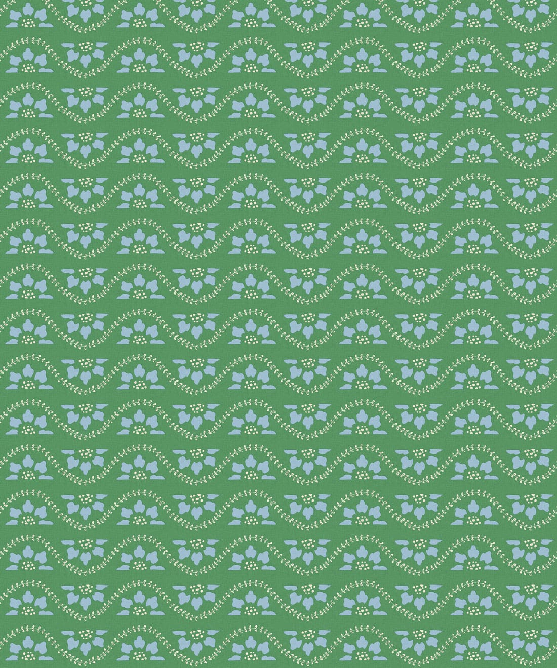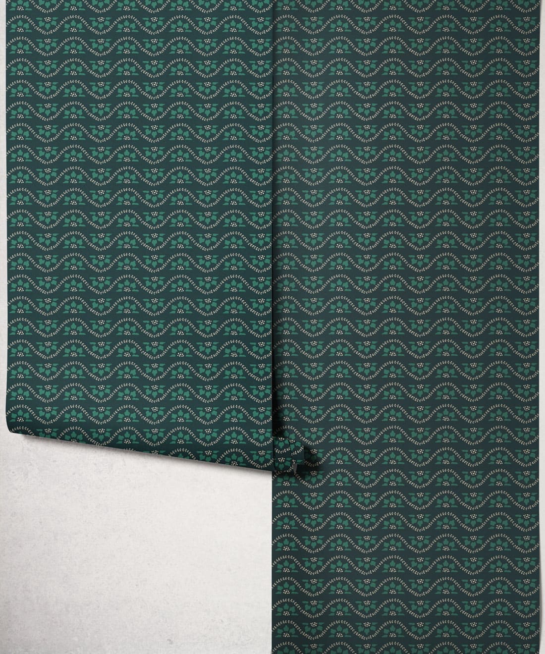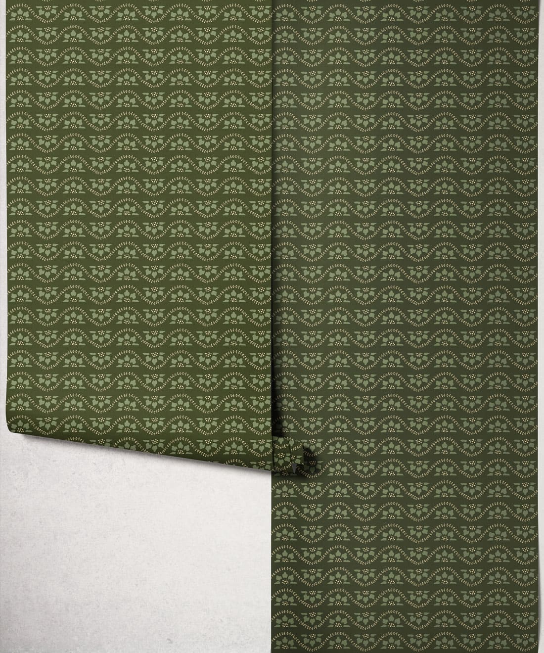 Its smaller scale allows the wallpaper to layer easily within interiors, adding decorative movement while complementing the collection’s larger botanicals.