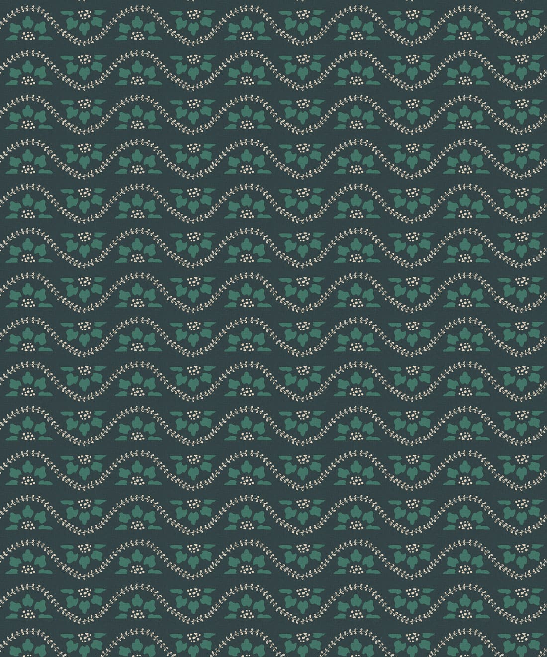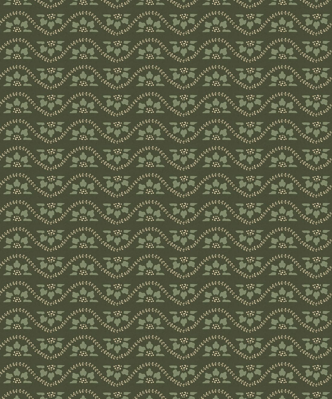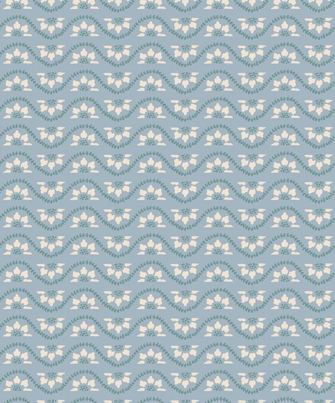 Rosette is a small scale horizontal stripe wallpaper featuring deconstructed flowers and winding vines arranged in a decorative repeat. The design draws inspiration from classic garden details and ornamental motifs found in traditional architecture.