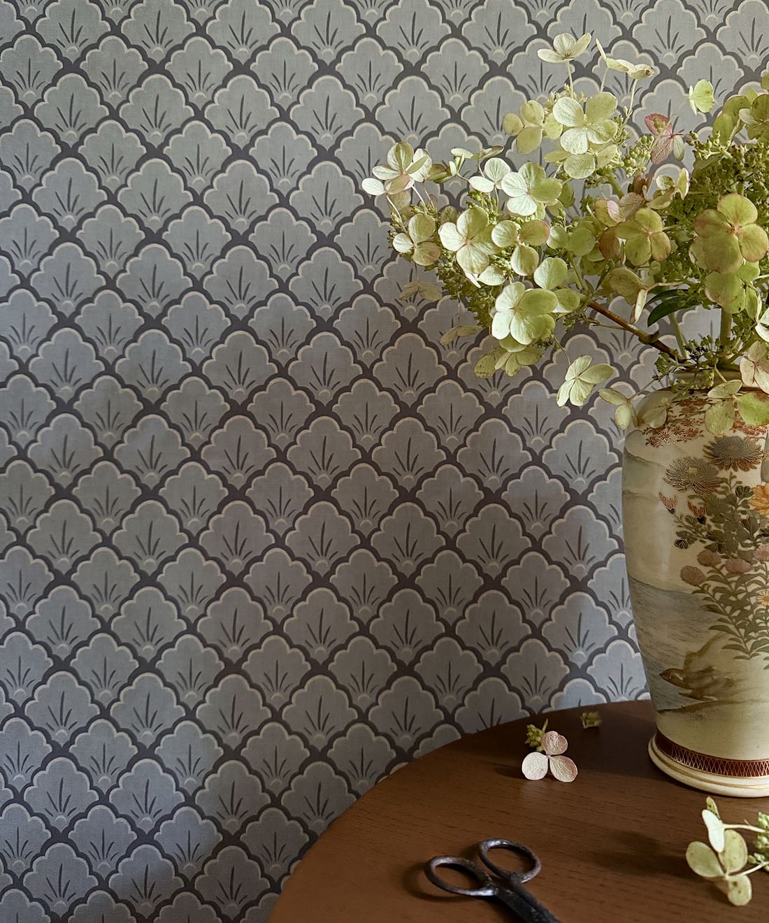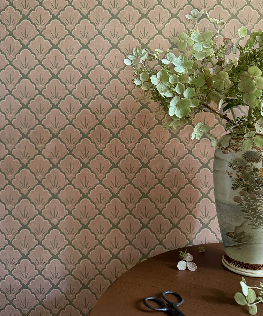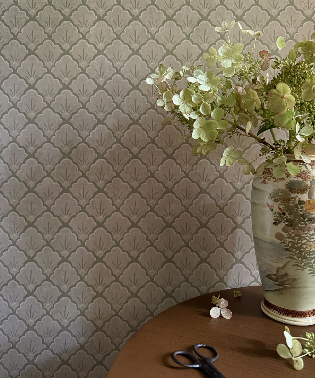 Refined and geometric, Shellyn takes inspiration from Art Deco with a subtle shell motif and linen-like texture. Available in eight colourways, this versatile coordinate balances larger designs and adds elegance when used alone. A timeless option for interiors seeking structure with softness.