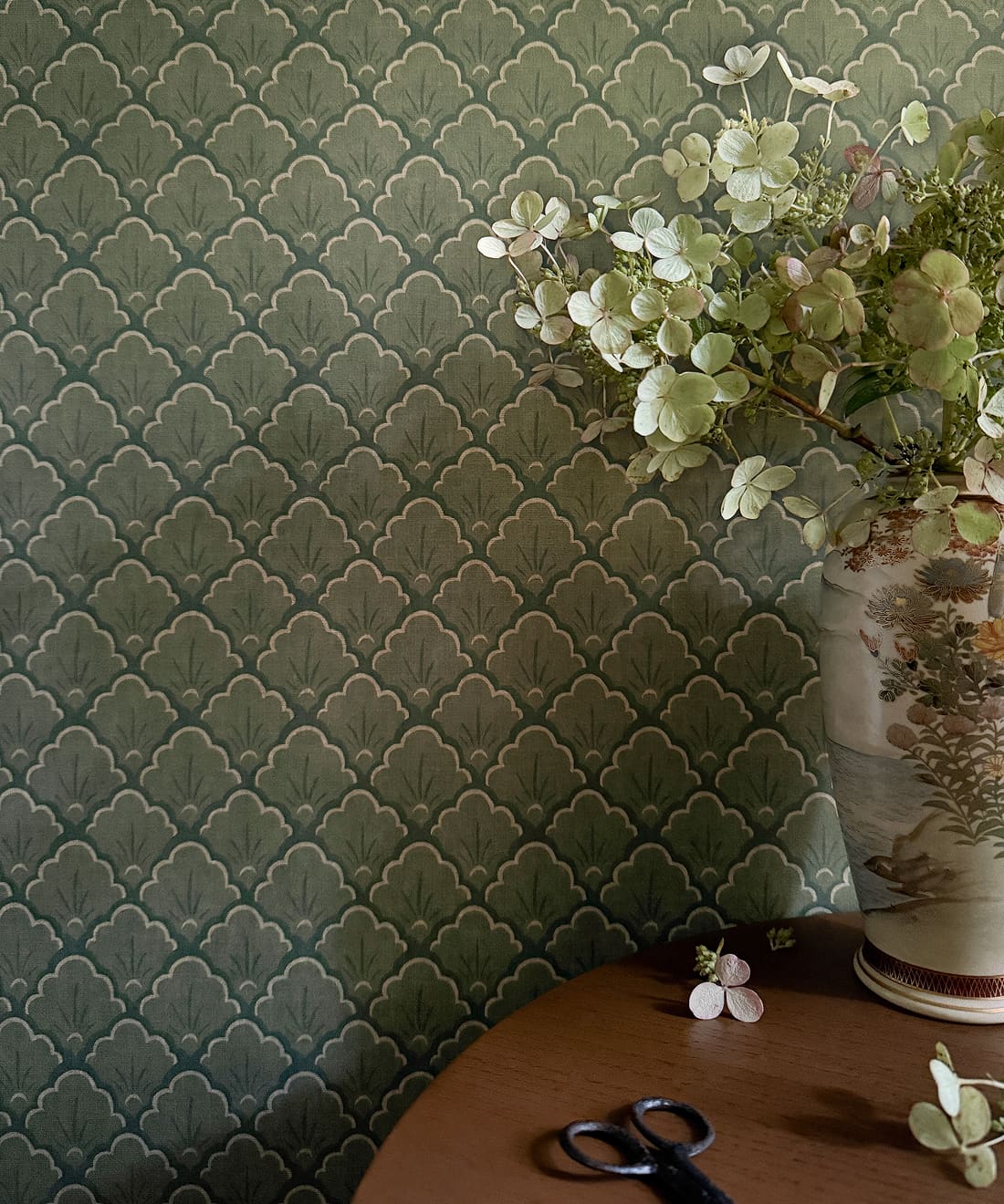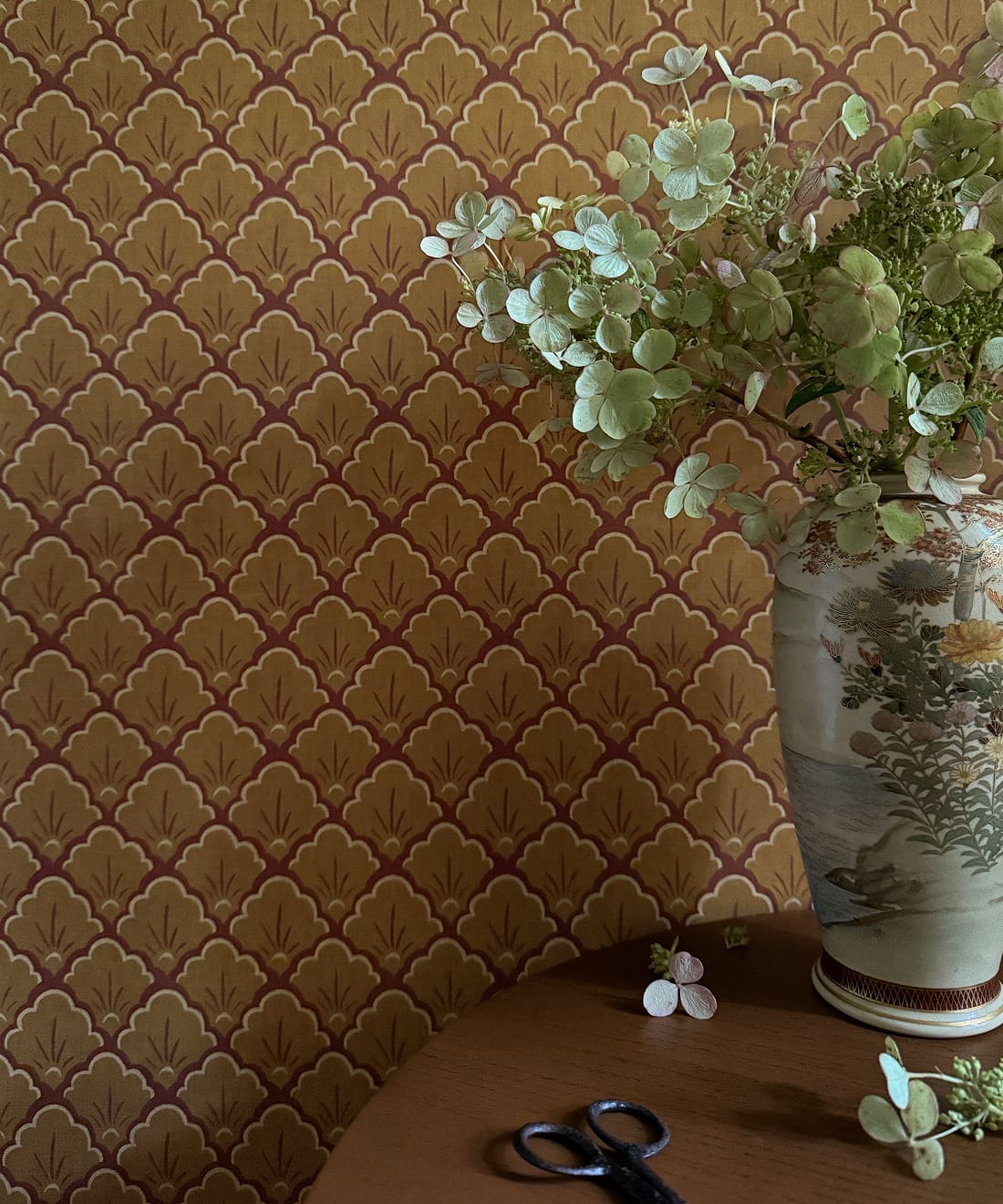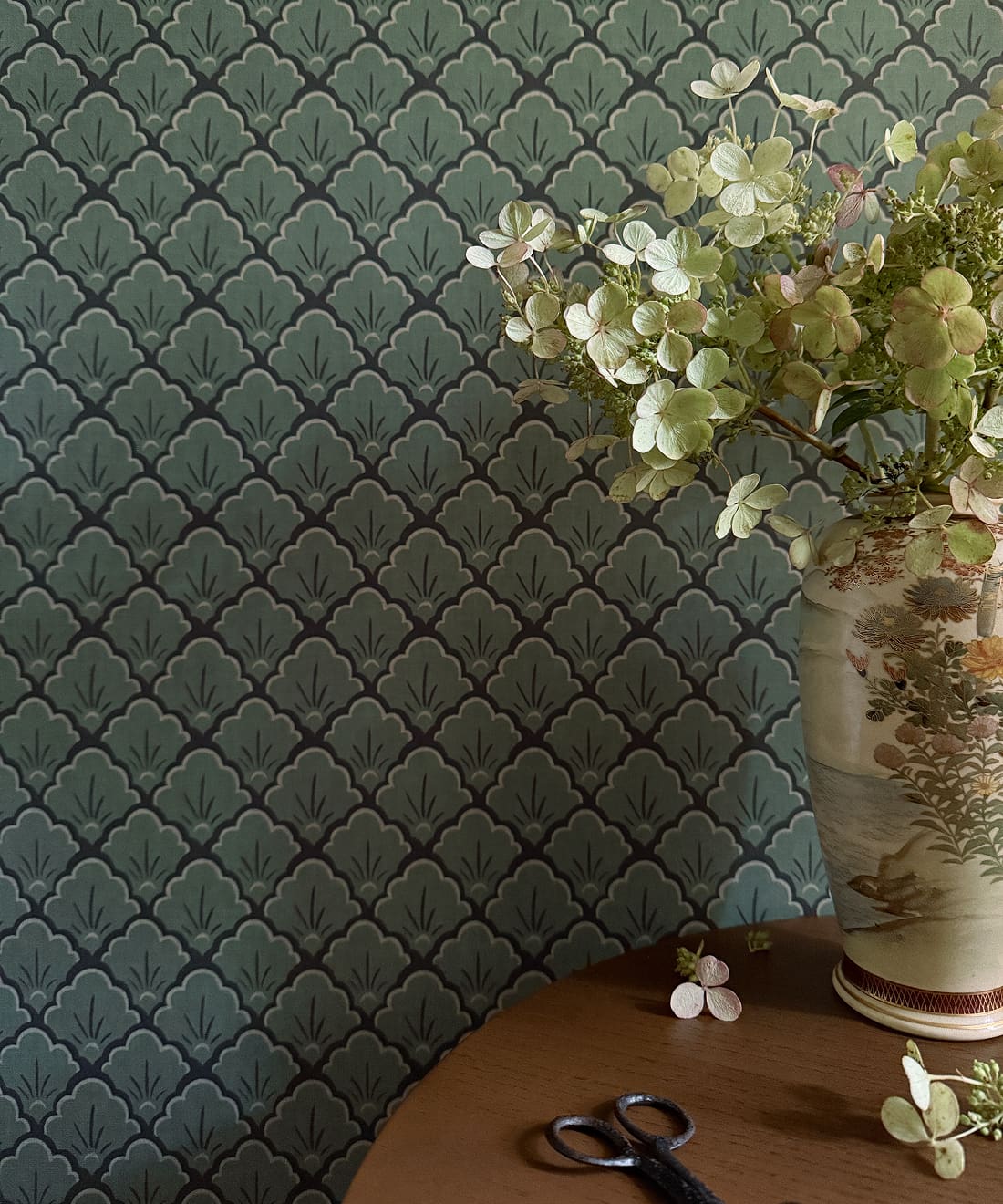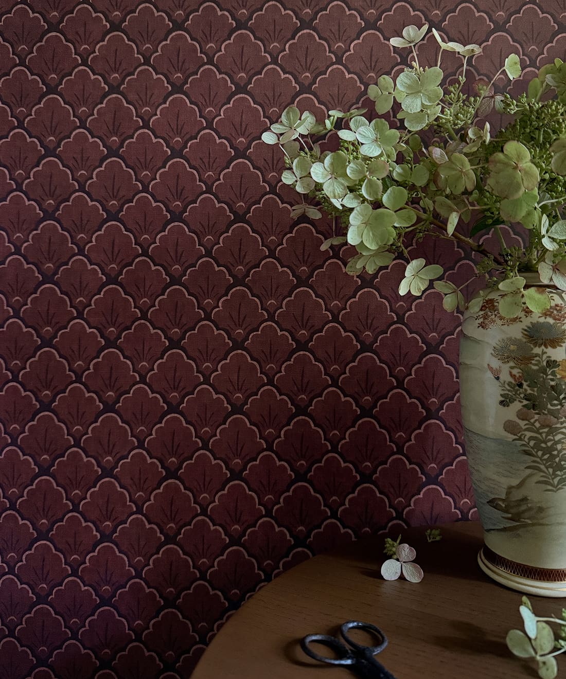 Refined and geometric, Shellyn takes inspiration from Art Deco with a subtle shell motif and linen-like texture. Available in eight colourways, this versatile coordinate balances larger designs and adds elegance when used alone. A timeless option for interiors seeking structure with softness.
