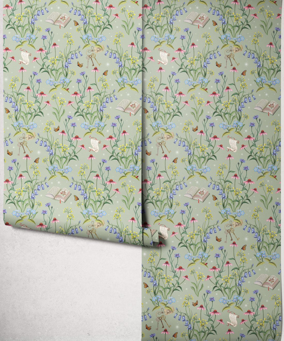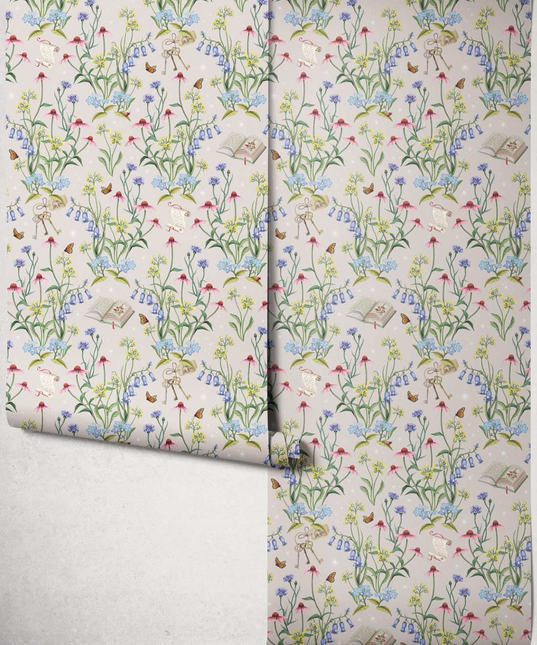 Soft, delicate and full of charm, Storybook Meadow Wallpaper brings a gentle sense of magic to interiors inspired by The Magic Faraway Tree stories.