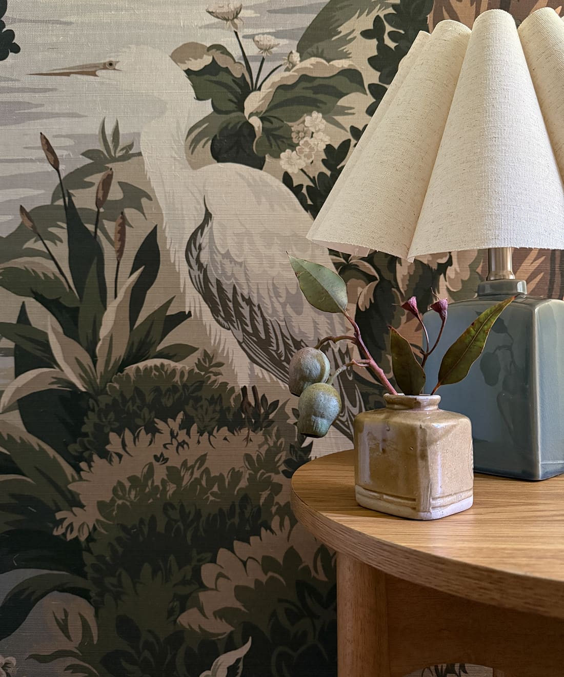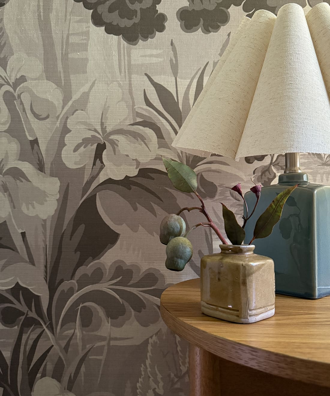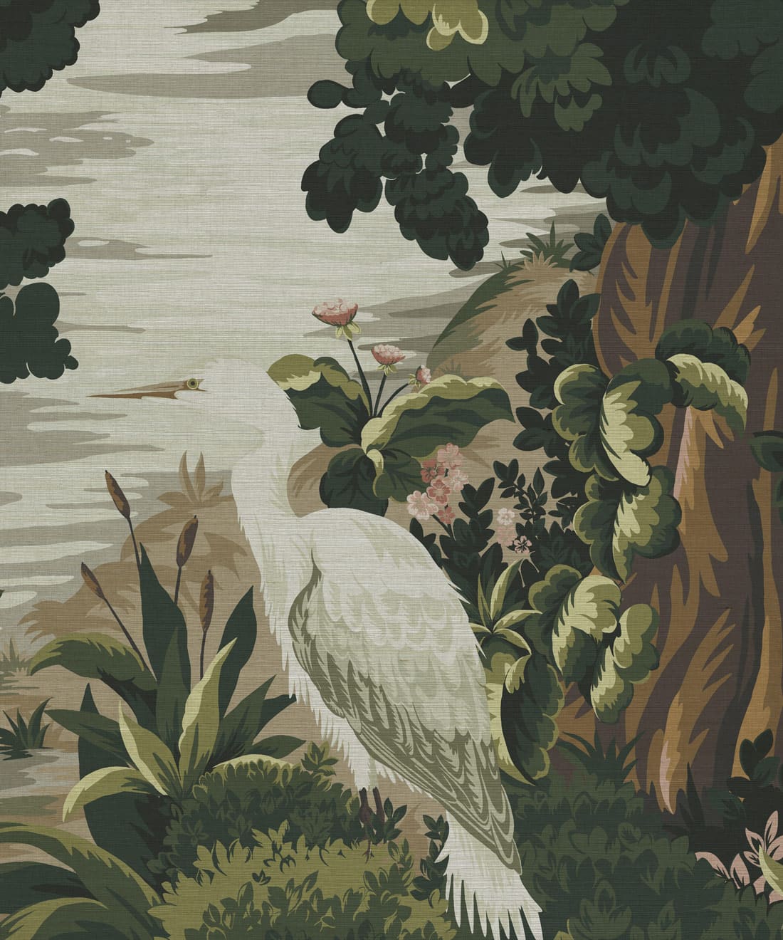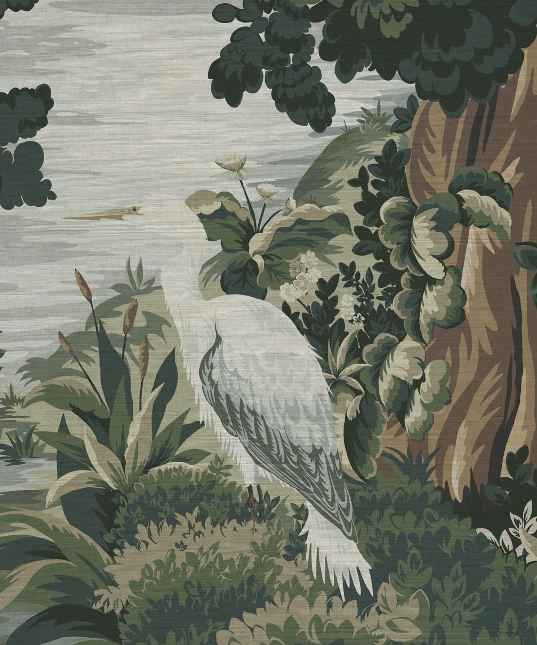 When produced on Grasscloth, The Glenn takes on a new richness. The woodland scene gains depth and dimension through natural fibres, creating subtle variations that make each panel unique. Available in seven colourways, this mural combines heritage inspiration with organic luxury, transforming walls into tactile, story-filled canvases.