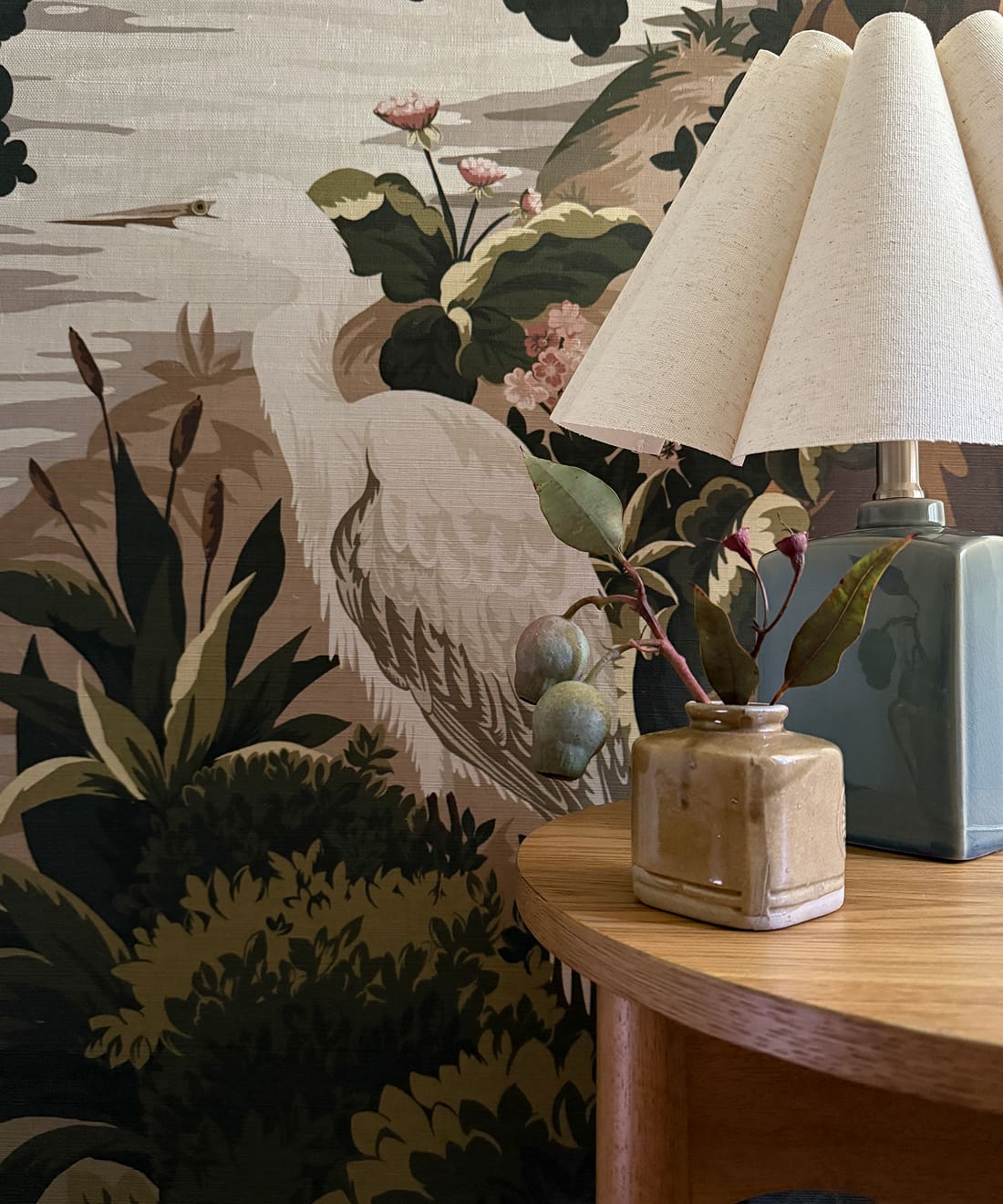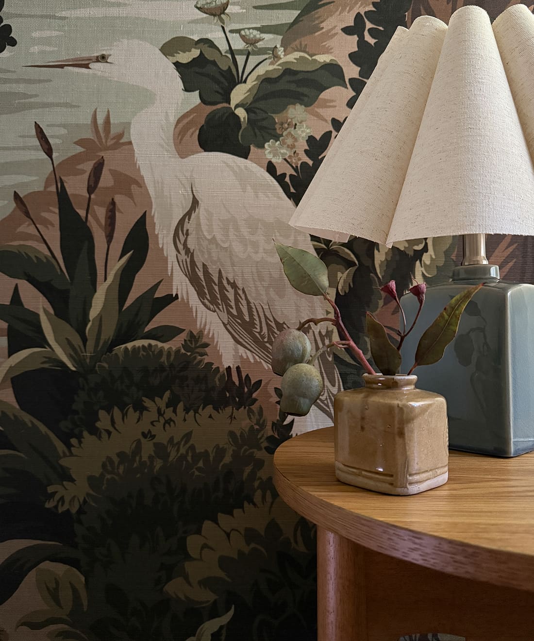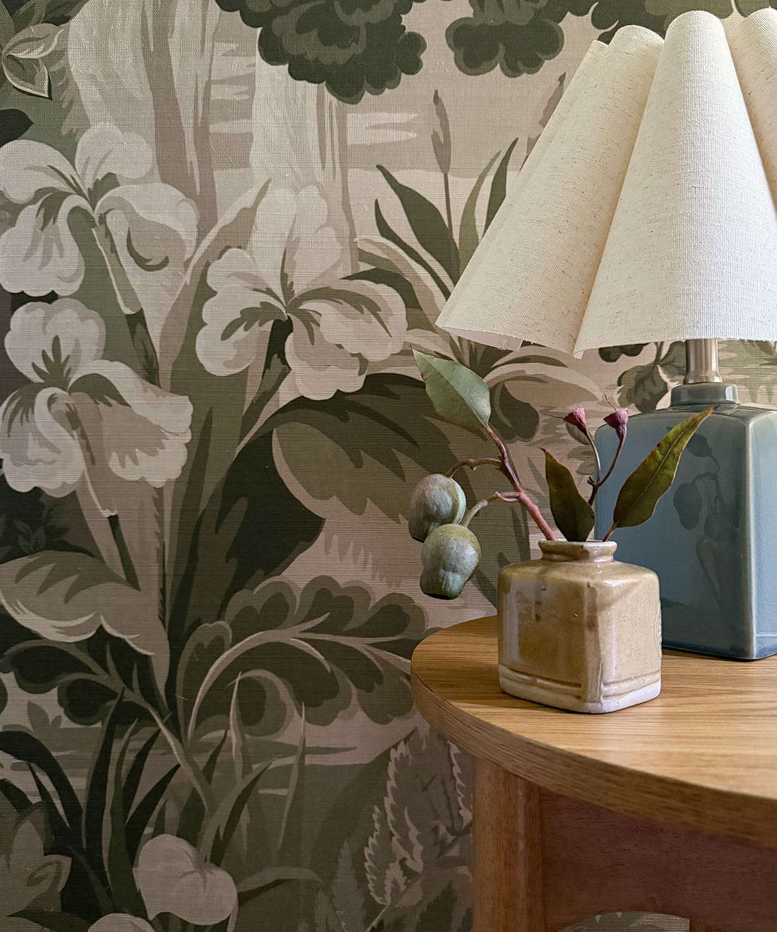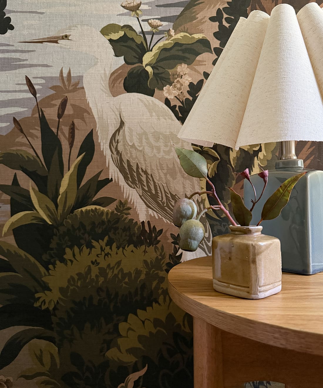 When produced on Grasscloth, The Glenn takes on a new richness. The woodland scene gains depth and dimension through natural fibres, creating subtle variations that make each panel unique. Available in seven colourways, this mural combines heritage inspiration with organic luxury, transforming walls into tactile, story-filled canvases.