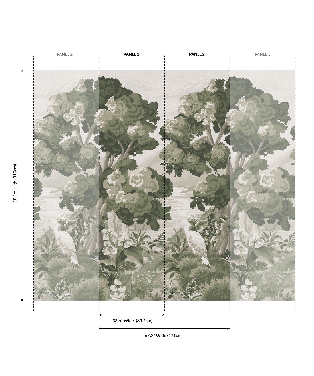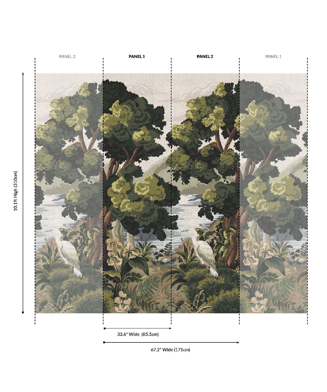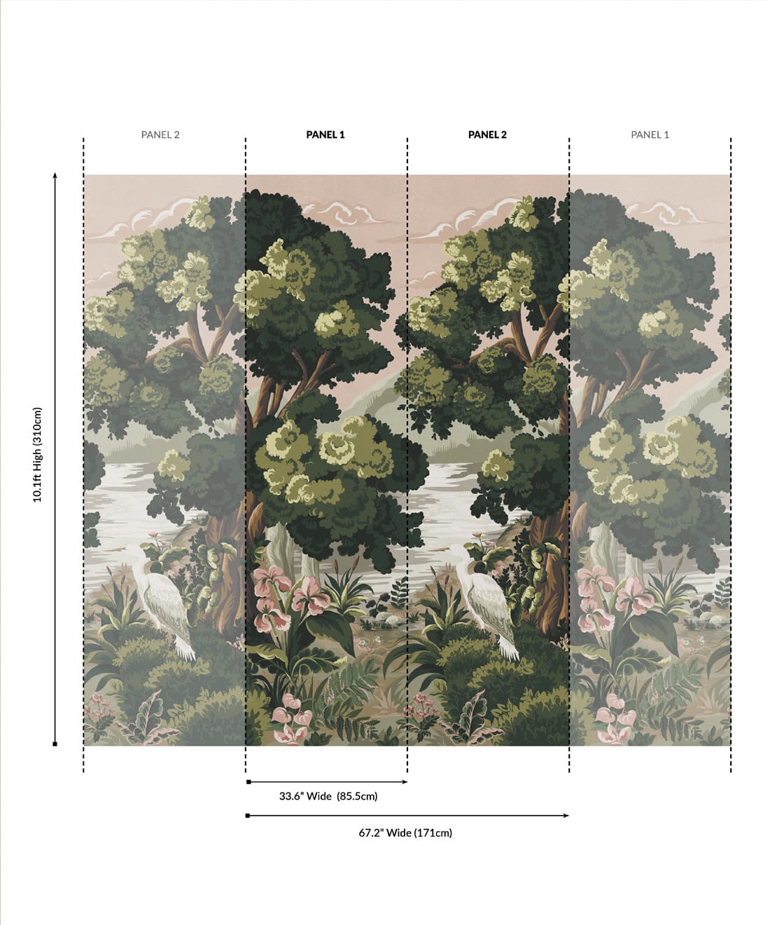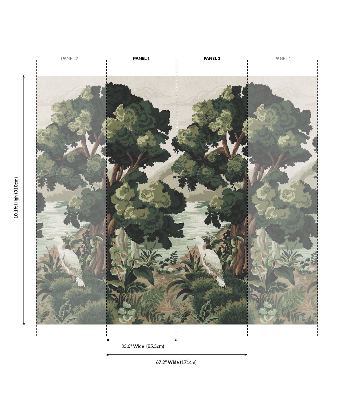 When produced on Grasscloth, The Glenn takes on a new richness. The woodland scene gains depth and dimension through natural fibres, creating subtle variations that make each panel unique. Available in seven colourways, this mural combines heritage inspiration with organic luxury, transforming walls into tactile, story-filled canvases.
