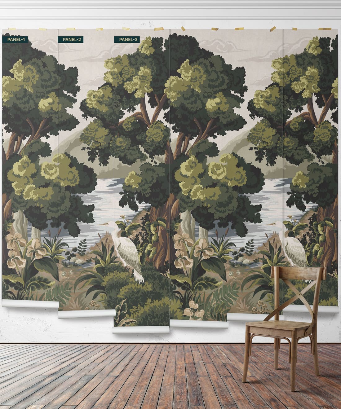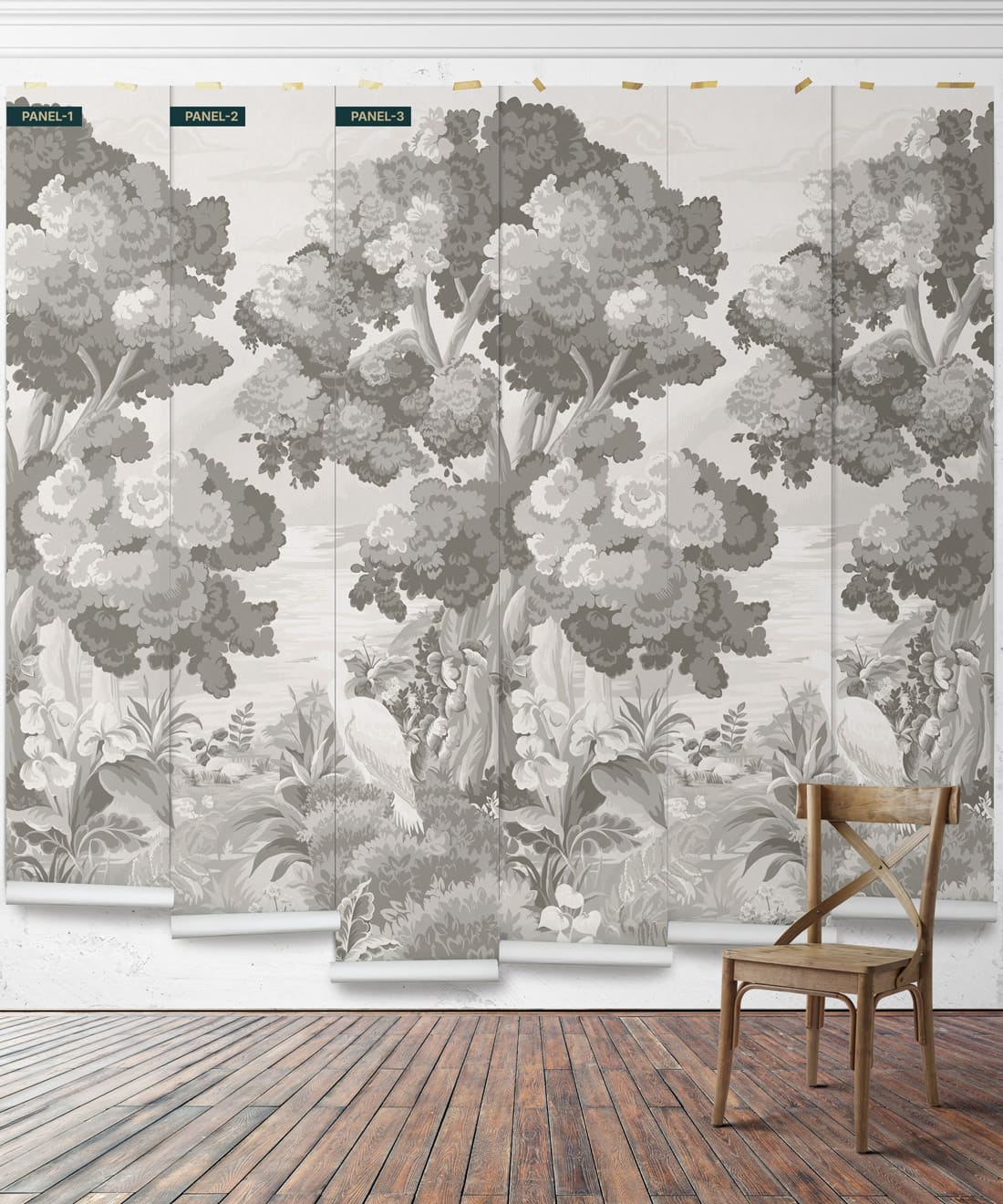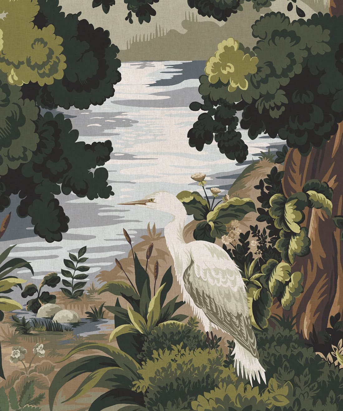 A three-panel mural inspired by medieval tapestries, The Glenn portrays a serene woodland clearing where a heron stands among flourishing botanicals. Printed on smooth non-woven, it captures the artistry in fine detail while offering durability and ease of installation. With seven colourways, The Glenn brings historic narrative and natural beauty into today’s interiors.