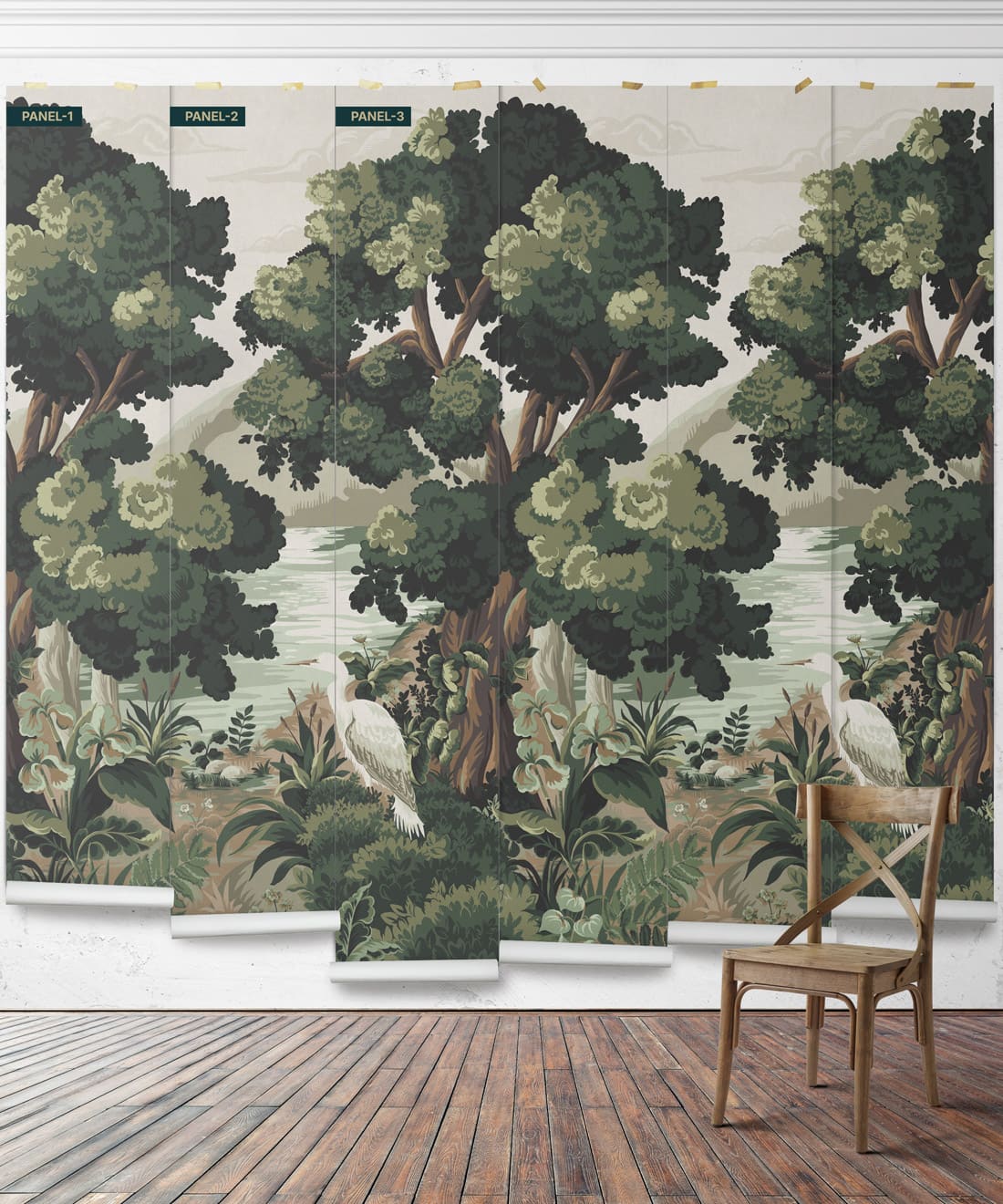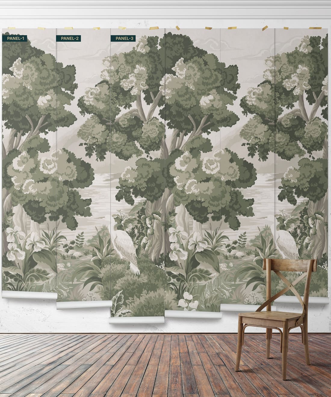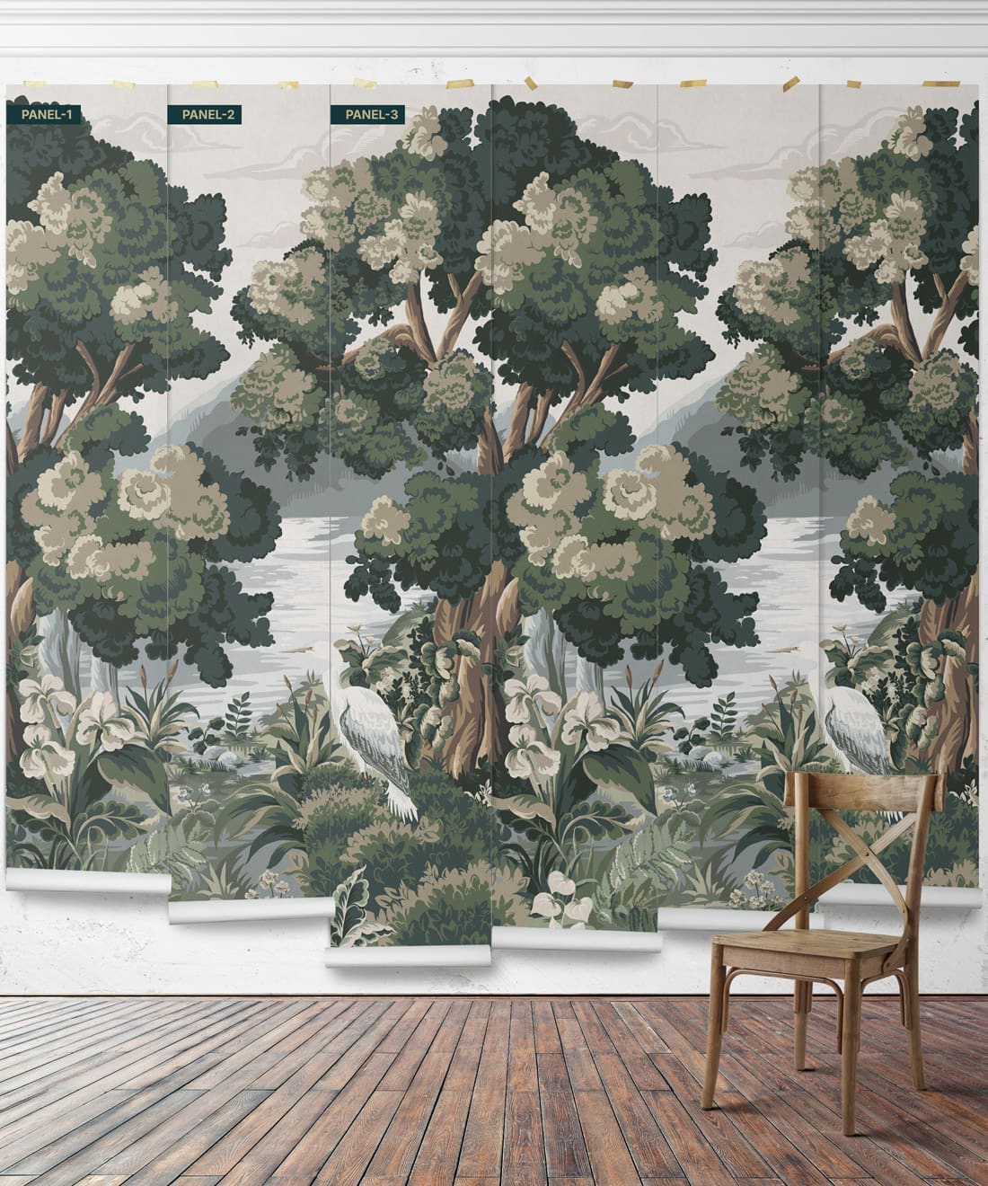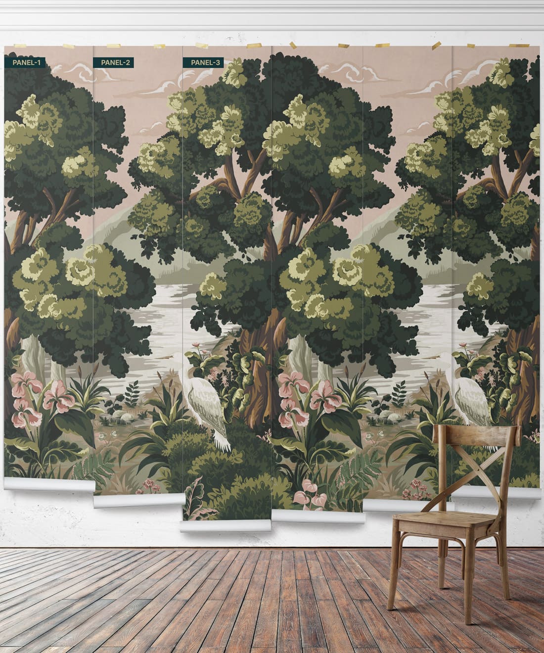A three-panel mural inspired by medieval tapestries, The Glenn portrays a serene woodland clearing where a heron stands among flourishing botanicals. Printed on smooth non-woven, it captures the artistry in fine detail while offering durability and ease of installation. With seven colourways, The Glenn brings historic narrative and natural beauty into today’s interiors.