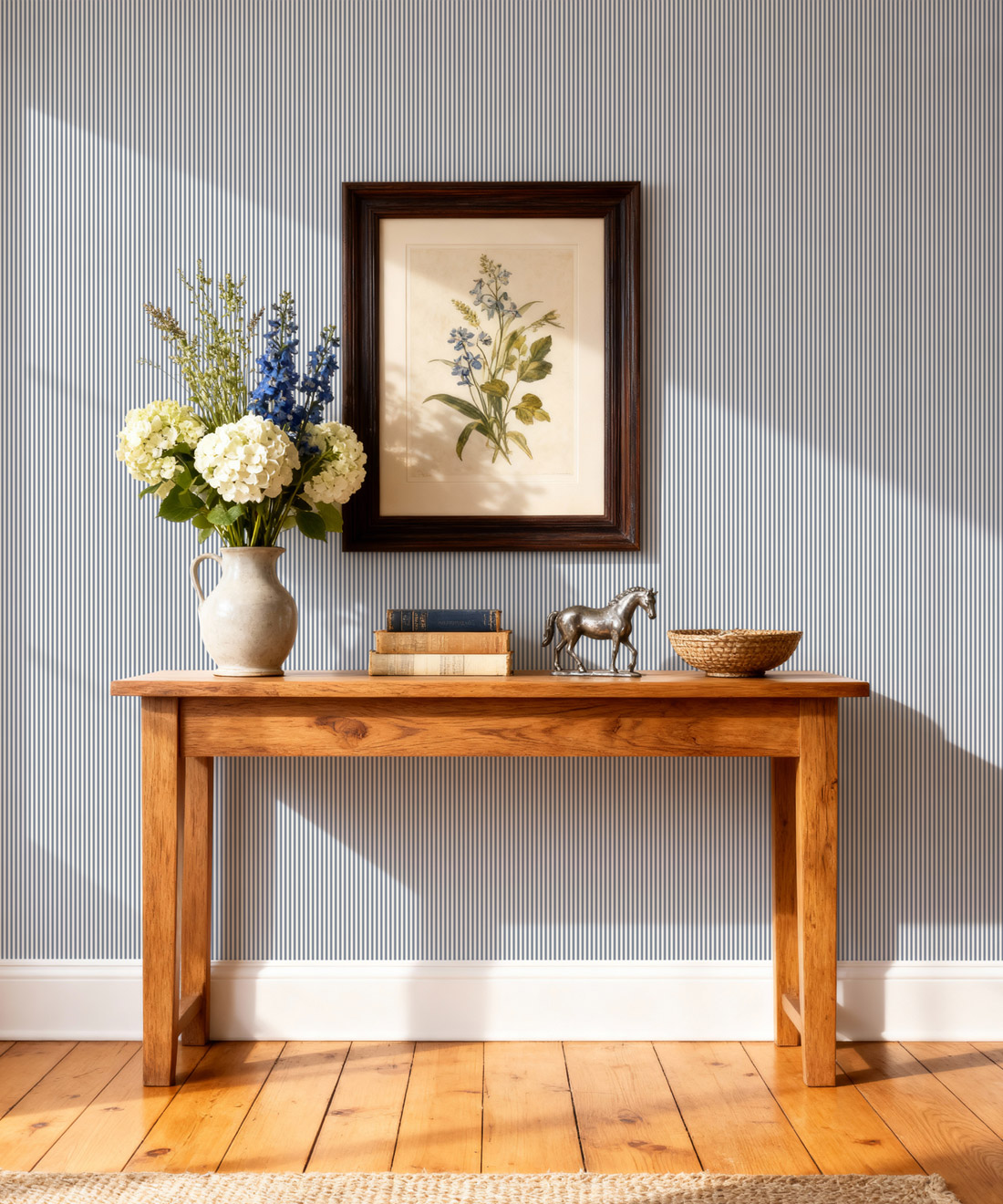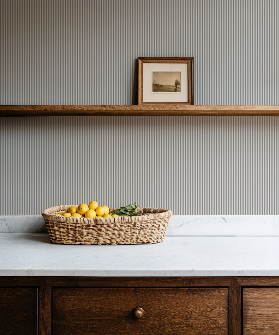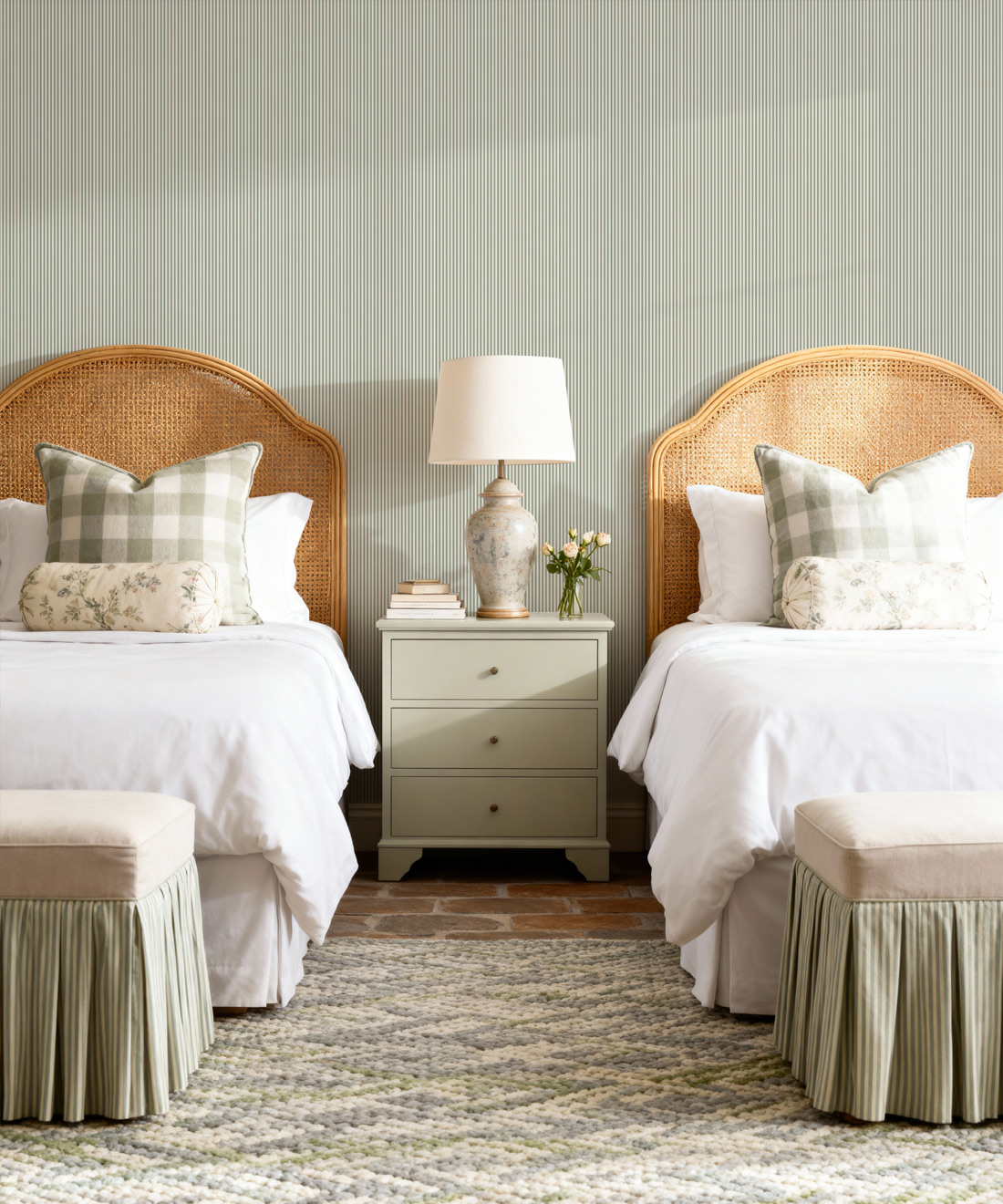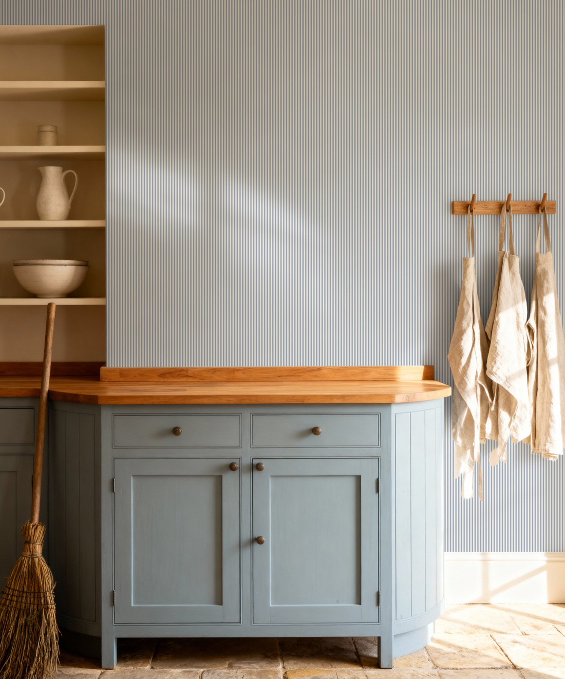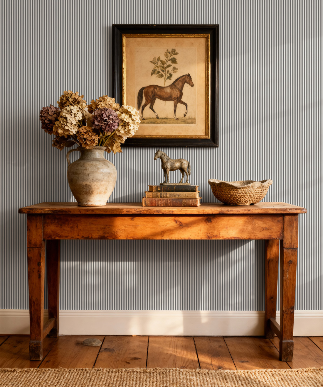 Heritage Hall celebrates the enduring charm of the ticking stripe, a pattern beloved in English and American interiors for centuries. Once woven into sturdy linens, ticking stripes were prized for their order, durability, and understated elegance. This collection honours that legacy with a palette of timeless classics — from the strength of Estate Black and the subtle depth of Cobblestone to the natural calm of English Moss and warmth of Farmhouse Red. Nautical tones like Harbour Navy and refined shades such as Provençal Blue add sophistication, while Sandstone offers a soft, versatile neutral. Together, these colours create wallpapers that are both authentic and versatile, perfectly suited to traditional homes or modern spaces seeking a touch of heritage. Heritage Hall provides a foundation that never falls out of fashion, ensuring the iconic stripe continues to feel fresh and relevant.
