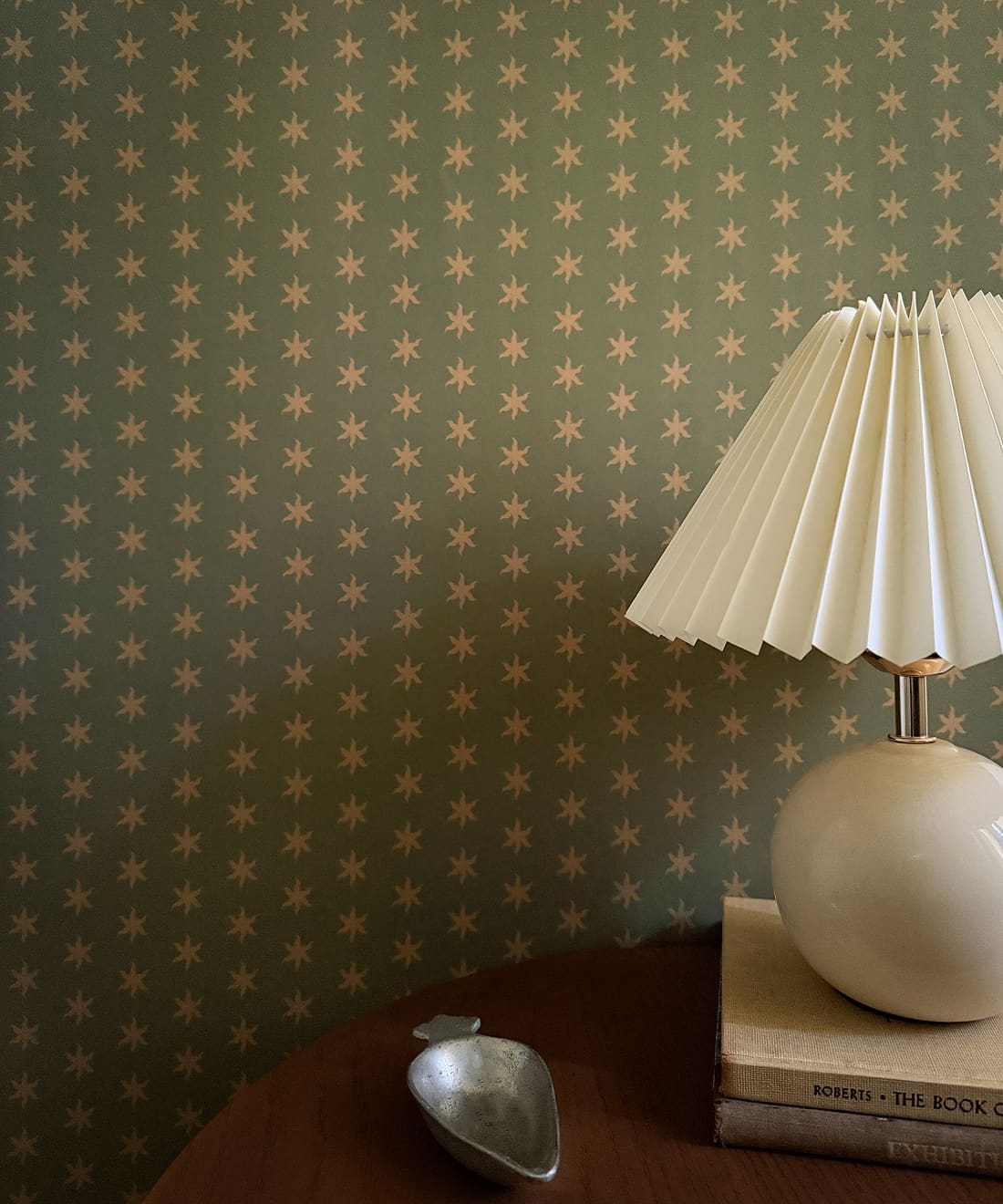 Inspired by the ceilings of English heritage landmarks, Tudor Star reinterprets historic geometry in a refreshingly simple repeat. Printed on non-woven, this small-scale design is highly versatile, available in eight colourways that make it ideal for layering with bolder patterns or adding subtle character on its own.